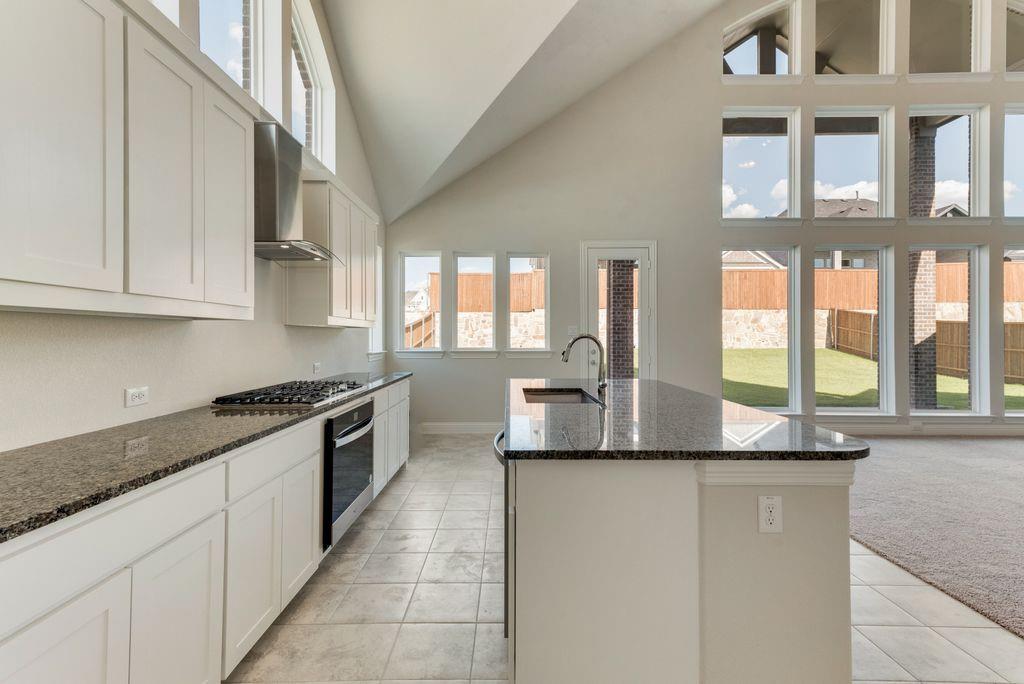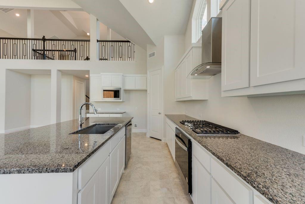 The chef’s kitchen is a standout, featuring a spacious island, Shaker-style cabinetry, a full bowl sink, granite slab countertops, stainless steel appliances, a five-burner gas cooktop, large island and a walk-in pantry—perfect for everyday living and entertaining. The open-concept family room is filled with natural light from a wall of energy-efficient windows for lots of natural light and centers around a cozy gas fireplace.