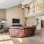 The inviting open-concept family room, anchored by a cozy gas fireplace, flows seamlessly into the bright eat-in kitchen. Featuring a large island, ample natural light, and backyard access, it's ideal for entertaining. The spacious primary suite on the main floor includes a relaxing sitting area and private patio entrance, perfect for morning coffee or evening downtime.