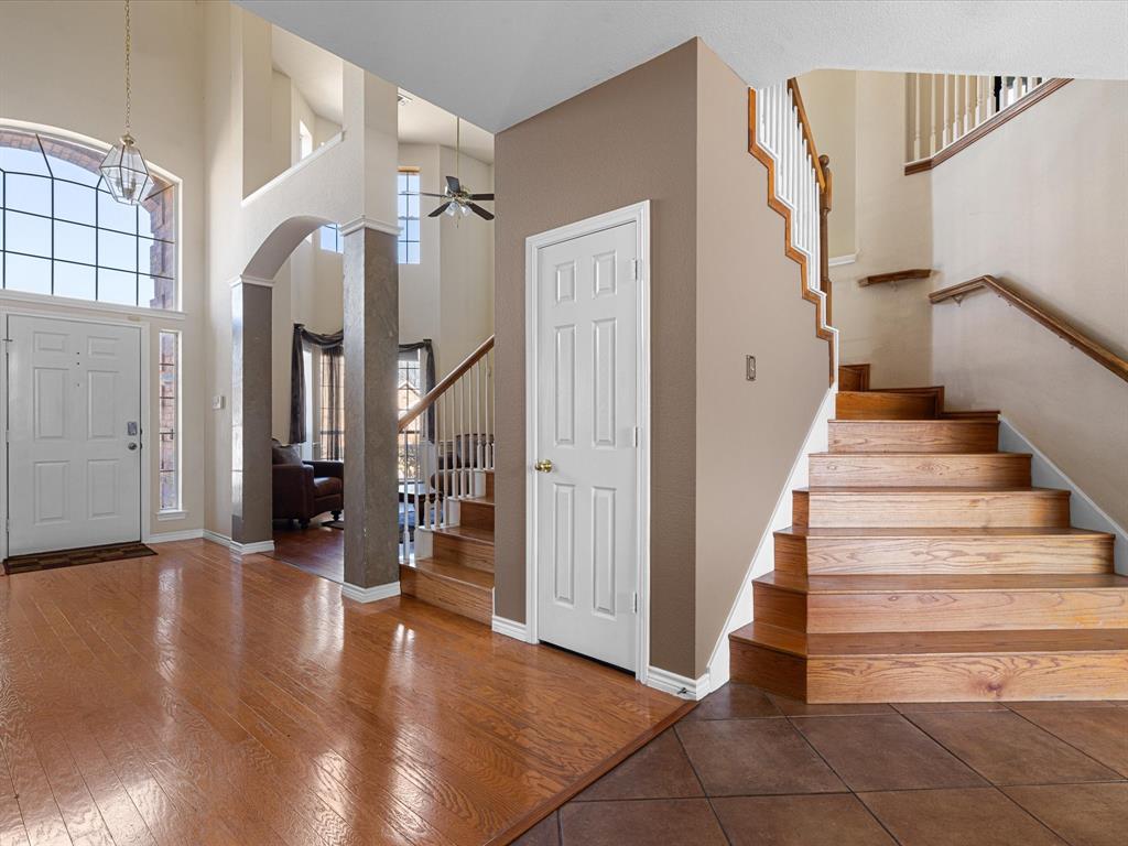 Don’t miss your chance to explore this impressive four-bedroom, three-and-a-half-bath home filled with potential. From the grand entry featuring a striking double staircase, you'll find elegant formal living and dining spaces perfect for gatherings, highlighted by soaring ceilings. A private study with built-in shelving offers a quiet retreat for work or relaxation.