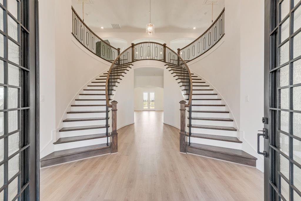 Spectacular Grand Home offers unrivaled elegance & charm, set on a spacious north-facing Acre homesite with a 4 Car Garage & Port Cochere driveway. Upon arrival, you’re greeted by double front doors and a striking dual staircase, all complemented by beautiful wood flooring throughout. The expansive Family Room boasts soaring ceilings, a dramatic two-story linear fireplace, and opens up to a large, covered back patio perfect for outdoor living.