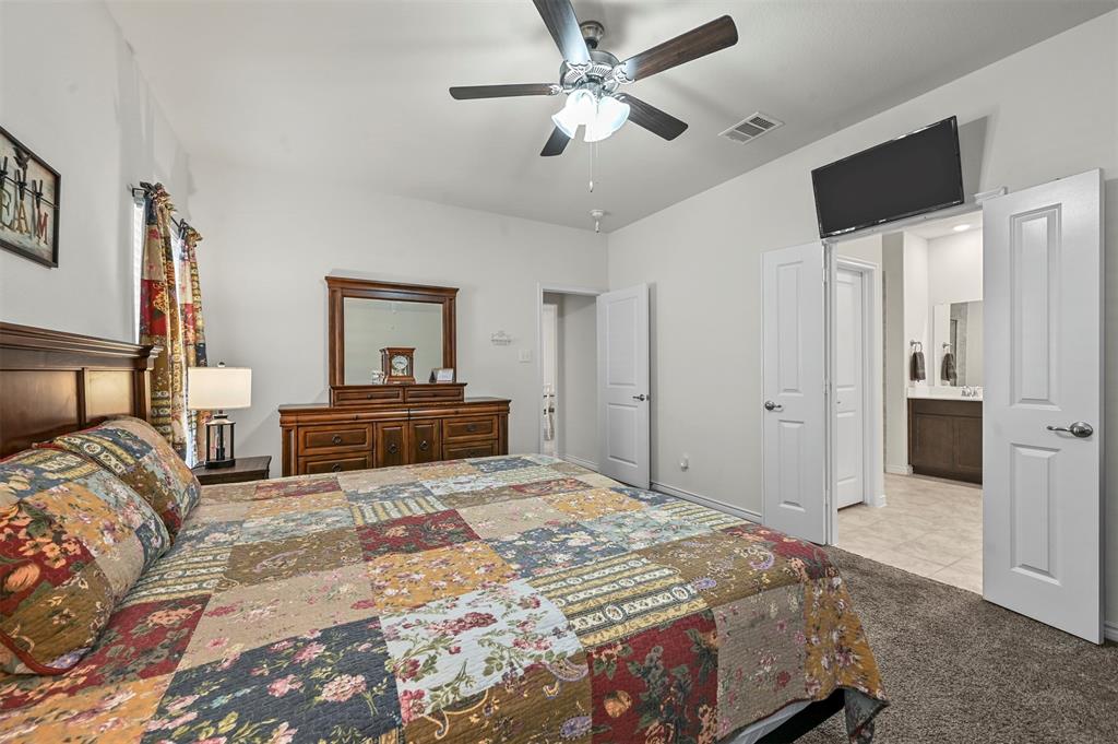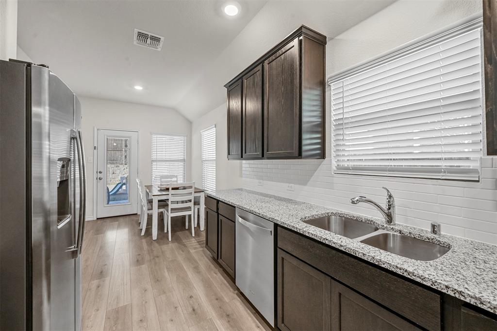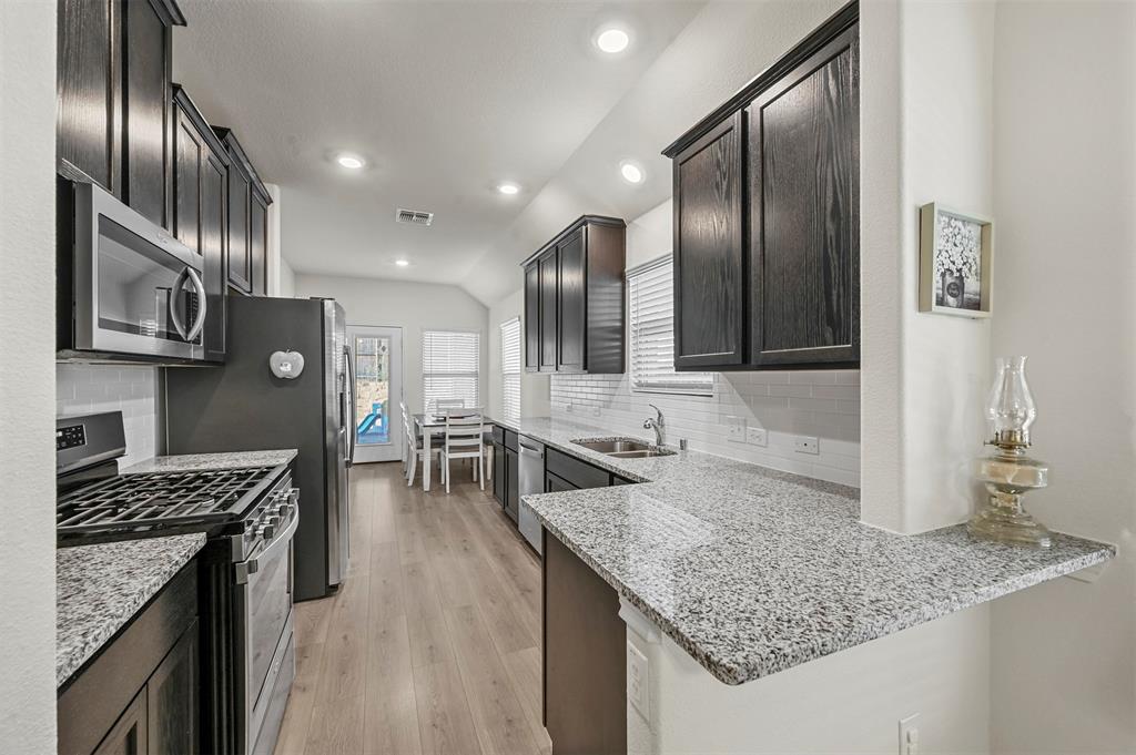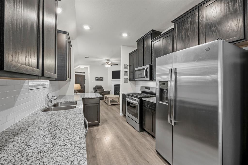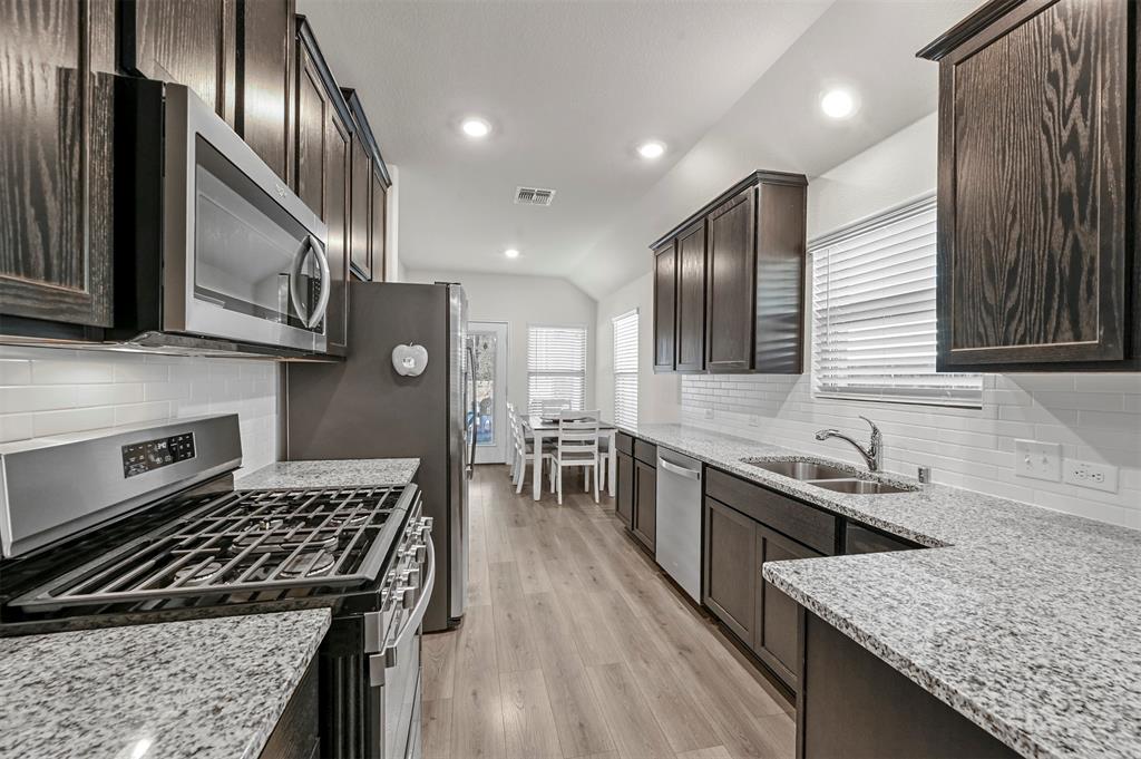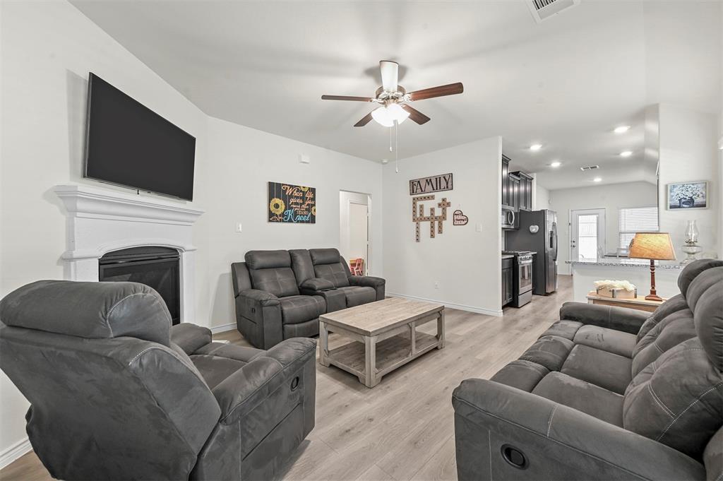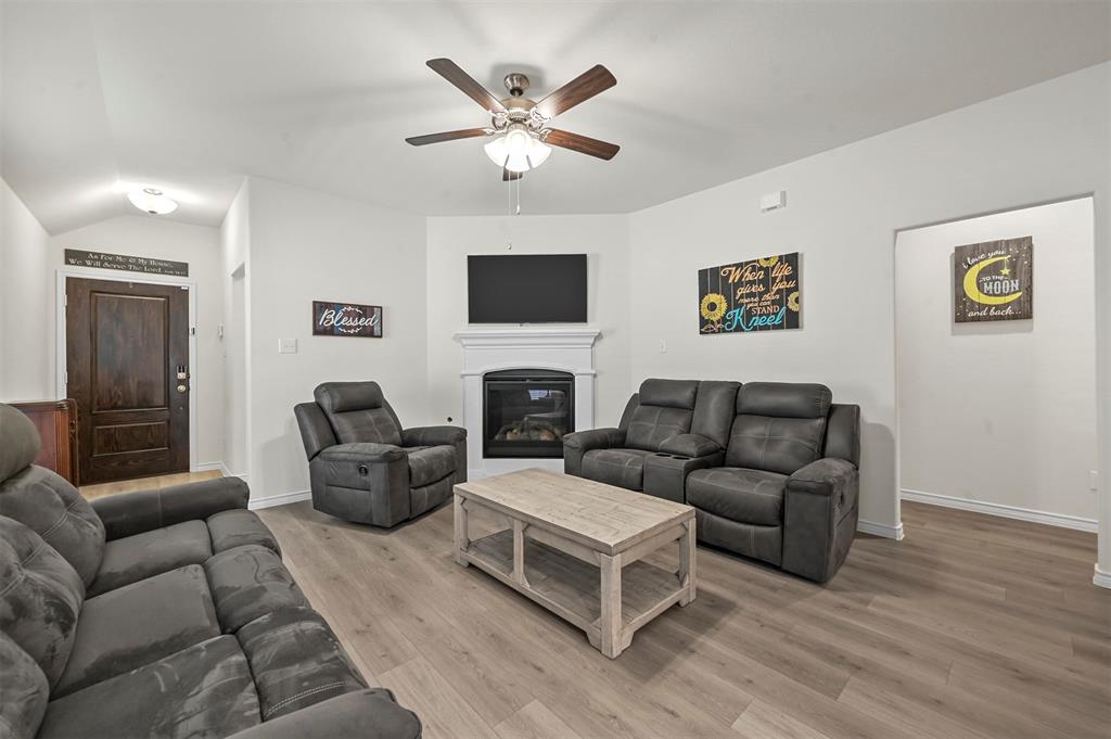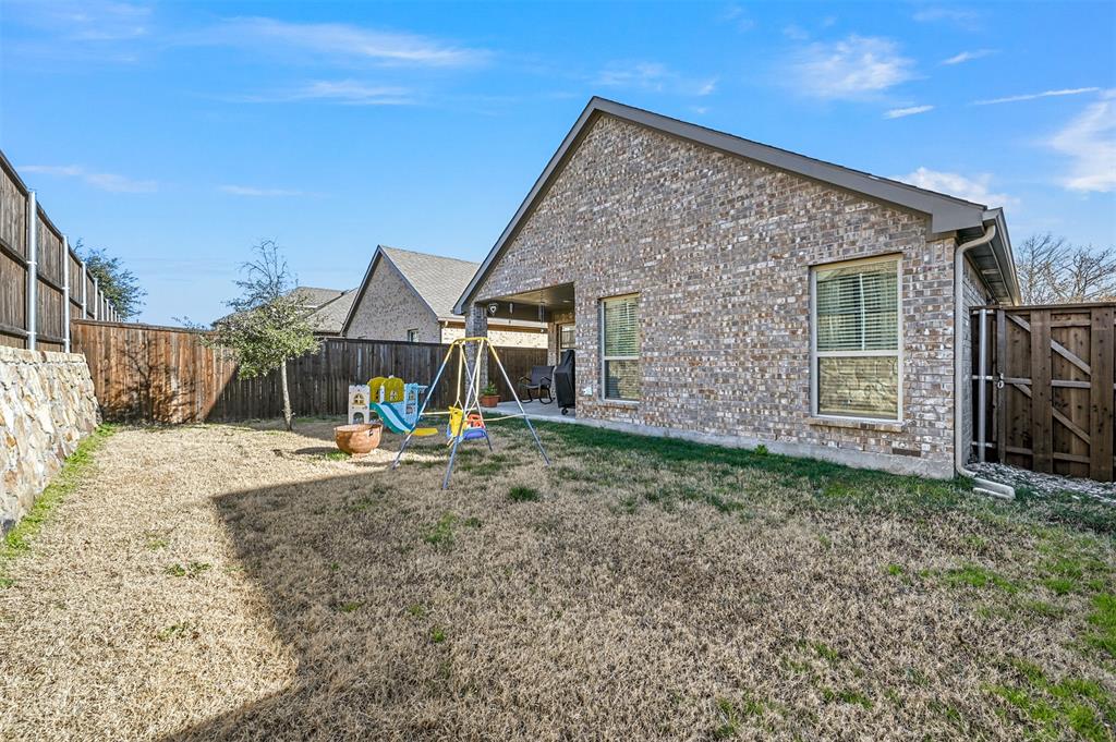 Located in the sought-after Clements Ranch community in Forney, this impeccably maintained 3-bedroom, 2-bath home boasts stunning curb appeal with its beautiful brick and stone elevation, lush landscaping, and a prime location directly across from the scenic community pond and walking path. The inviting living room, highlighted by a stamped concrete fireplace, flows seamlessly into the eat-in galley kitchen, which showcases granite countertops, stainless steel appliances, and a gas range. The spacious owner's suite offers a relaxing retreat with an ensuite featuring a garden tub, walk-in shower, and generous walk-in closet. Two additional bedrooms share a well-appointed full bath. Enjoy all the neighborhood has to offer, including walking trails, a clubhouse, and a sparkling community pool. With an excellent location providing an easy commute, this home is a perfect blend of comfort and convenience!