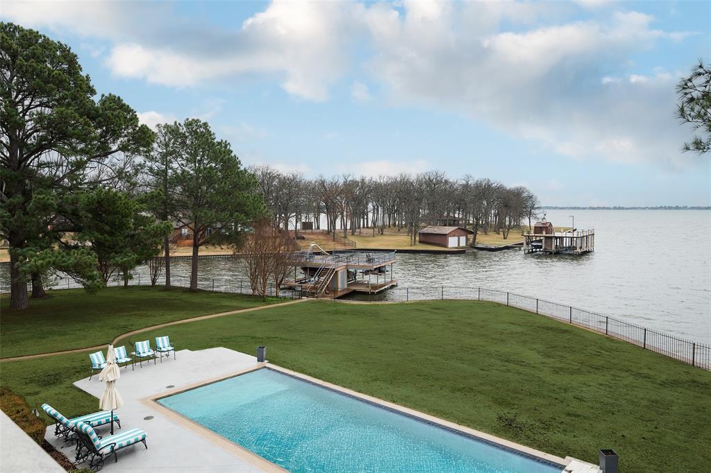 Welcome to your newly remodeled escape from the city on DEEP WATER lake frontage of 337 feet. Enjoy as your primary or secondary+ residence. This spacious, light-filled home, sitting atop 1.16 acres on Cedar Creek Lake, within an exclusive community of only 5, multi-million dollar properties, shimmers with stunning lake views from every room, including all 5 en-suite bedrooms. New floor-to-ceiling windows span the lake-facing landscaped backyard, patio and pool, providing unobstructed lake views, inviting the outdoors in. The open-concept floorplan with its chic, modern kitchen, stainless steel appliances, and custom island, adjoins the 25-ft ceilinged Great Room and its floor-to-ceiling fireplace. Easy-to-maintain, yet with an eye to modern design, the Great Room and kitchen floors are ceramic tile. Engineered wide plank flooring runs throughout the remainder of the house. Wide, eye-catching, modern, custom-built staircase links the home’s 2 stories. Second floor primary bedroom has a stone fireplace and glass doors leading to a private balcony. The primary bathroom includes a custom double vanity, a large walk-in shower, large walk-in closet and separate tub. Boathouse (1200 sq ft) includes two boat slips, and double jet-ski lifts, topped by an over-sized sun-deck. Underground 1000 gal. gasoline storage tank and fuel line to the dock. Just one more amenity of many that this amazing property offers.