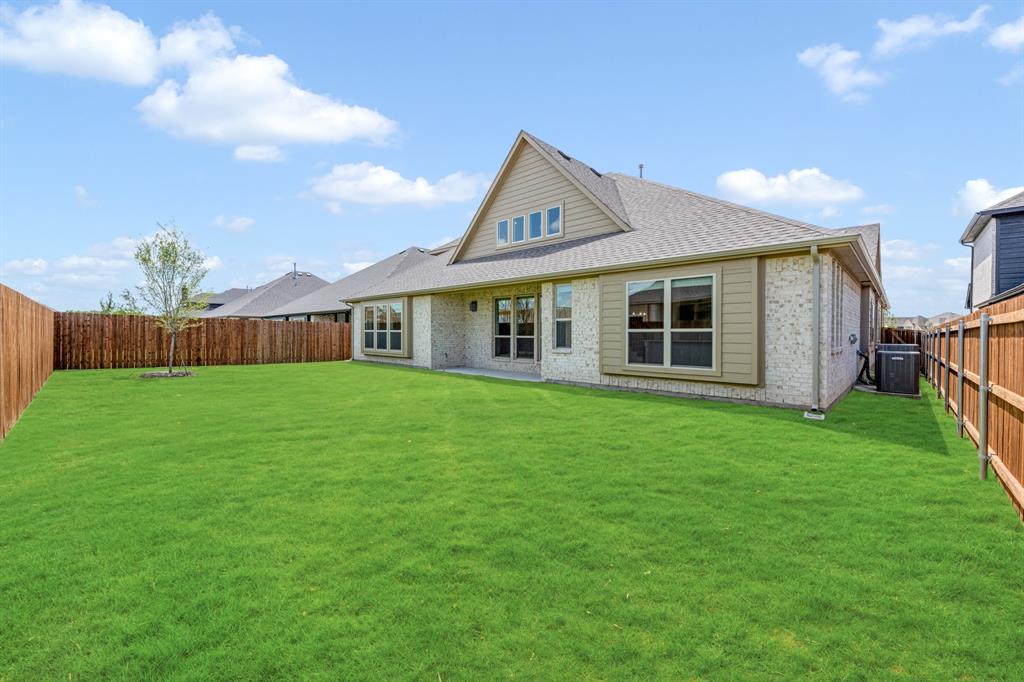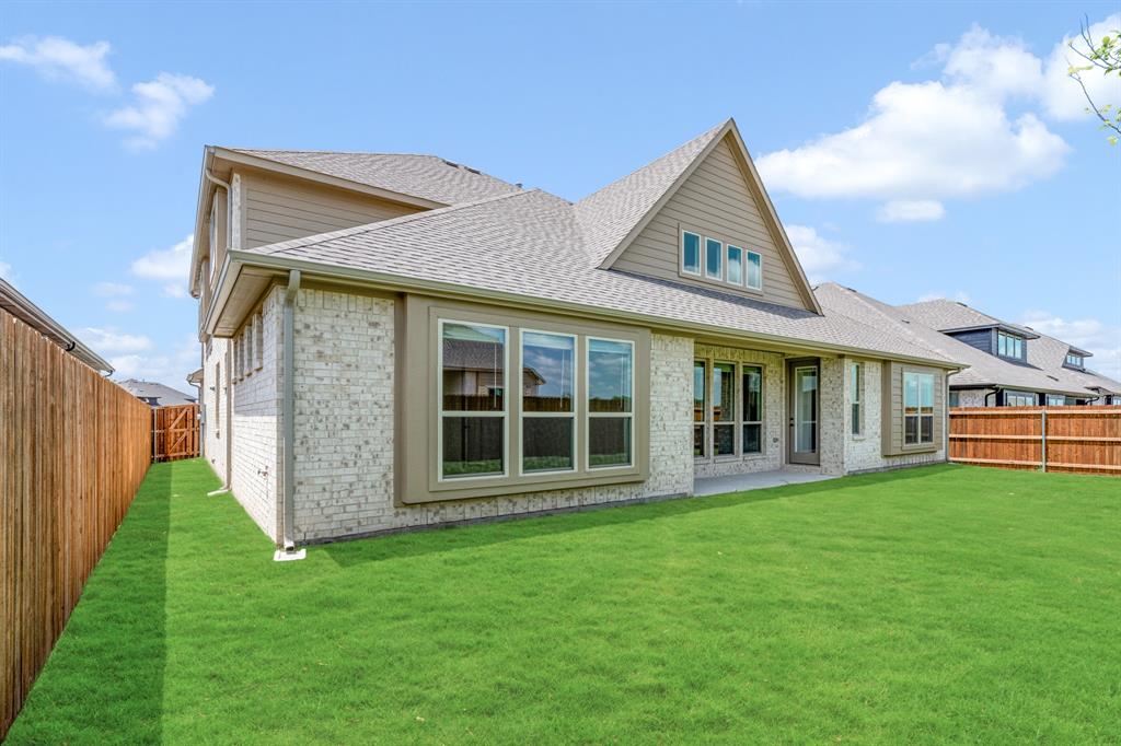 NEW! NEVER LIVED IN. Move-In Ready NOW. Bloomfield Homes’ most popular plan, the Primrose V, is a 4-bedroom home with a Study that is thoughtfully designed for both elegance and function. Step into timeless sophistication with a brick-and-stone front elevation, a bricked front porch, and a striking 8’ 5 Lite Front Door that creates a stunning first impression. Inside, the grand rotunda entry leads to light-filled spaces accentuated by soaring 8' interior doors downstairs and site-finished hardwood flooring that enhances the home’s beauty. The Family Room is anchored by a breathtaking stacked Stone-to-Ceiling Fireplace, complementing the vaulted ceilings for an open, airy feel. The Deluxe Kitchen is a chef’s dream, featuring Charleston Pure White cabinetry, pendant lighting over the expansive island, exotic quartz countertops, a 5-burner gas cooktop, and double ovens, all seamlessly blending style and function. A sleek 8’ patio door opens to the covered outdoor space, complete with a gas drop for effortless grilling. The Study, enclosed with elegant Glass French doors, provides a refined workspace, while a wrought iron railing at the Overlook upstairs adds an extra touch of sophistication. The luxurious Primary Suite boasts a spa-like bath with Quartz countertops, a soaking tub, and a spacious shower with a seat. Upstairs, a fourth bedroom, full bath, and generous Game and Media Rooms offer an ideal setup for guests and entertainment. Thoughtful finishing touches like 2-inch blinds, full gutters, and a 6’ stained wood fence with metal posts ensure both comfort and convenience in this stunning home. Visit Bloomfield in Wildflower Ranch today!