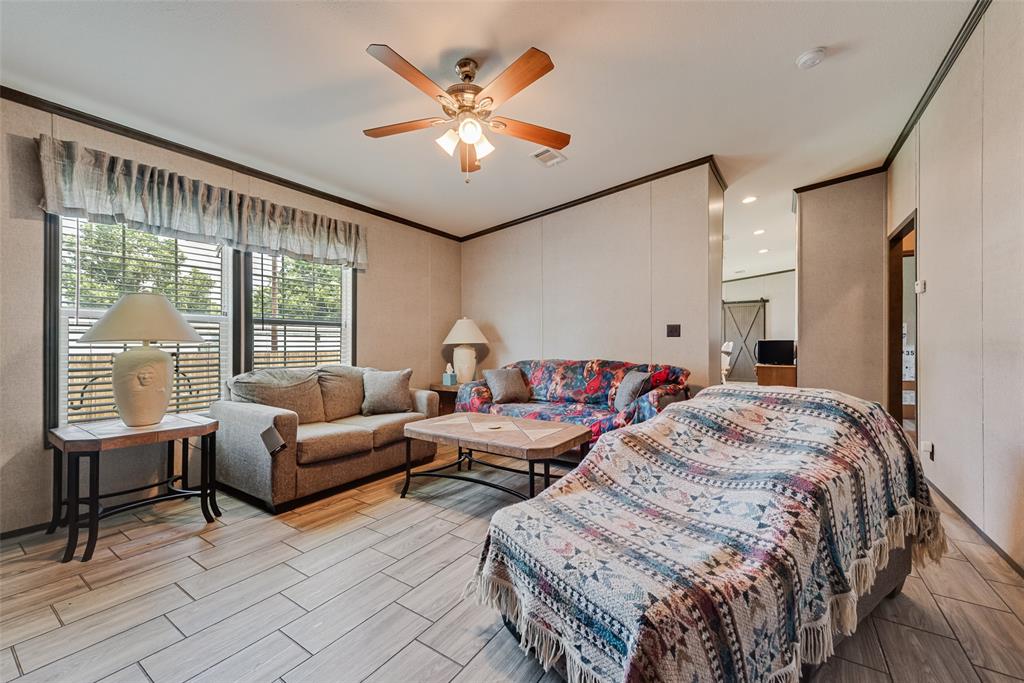Rent-to-own and owner financing options are available. FULLY FURNISHED! This roomy 3-bedroom 2 bath 2018 Palm Harbor is sitting on 2 large lots minutes from the lake, and features two living areas and an office. Luxury vinyl flooring throughout, wood-burning fireplace with stone façade, and ceiling fans. The kitchen boasts a large, beautiful island, eat-in dining, and custom cabinets. Spacious primary bedroom that has a double sink vanity, a garden tub, and a separate shower. Bedrooms 2 and 3 are jack and jill bath with separate vanities. Home sits on a large .31-acre lot with a 2-car detached garage, a fenced backyard with a shed, and an extended concrete patio. The home has been beautifully maintained. For specific details of furniture being offered for sale, please message the agent.