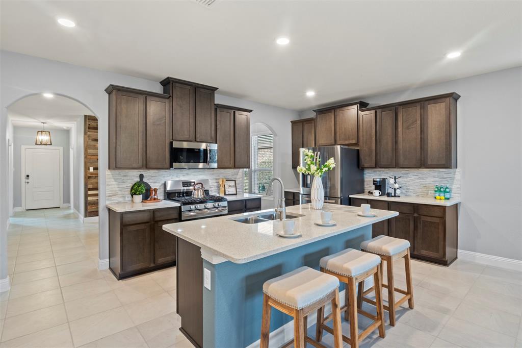 Price Reduction. Now offered at $459,999—this beautifully upgraded single-story home in Aubrey’s desirable Silverado community combines comfort, convenience, and value like never before. Featuring 4 bedrooms, 3 full baths, and a dedicated office, this floor plan is ideal for growing families and remote professionals alike. A private guest suite with its own ensuite bath is perfect for in-laws or visitors. Inside, you'll find thoughtful designer touches throughout—from the custom built-in buffet in the spacious dining room to a wine bar that leads into the luxurious owner’s suite with spa-like bath and oversized walk-in closet. The open-concept living area flows seamlessly into a gourmet kitchen with a large walk-in pantry, and the laundry room offers space for an additional fridge or freezer. Best of all, this popular single-story floor plan with generous square footage is no longer offered by the builder—making it an increasingly rare find. Located just steps from Silverado’s top-rated elementary school, community parks, pool, and amenity center. Even better—this home is positioned near the new Costco in Prosper, and a brand-new Target and Sprouts are coming soon to the area, adding to the long-term appeal and convenience of this fast-growing community. Refrigerator, washer, dryer, and two mounted TVs will convey with an acceptable offer—making this move-in ready home a standout. Schedule your showing today and take advantage of this rare opportunity!