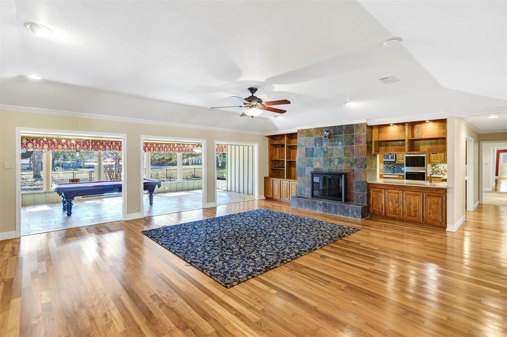 Inside, notice an open-concept design with two spacious living areas, complete with teak hardwood flooring. Natural light pours in through the abundance of windows. Cozy up by the wood-burning fireplace while enjoying a picturesque view of the 14th fairway.