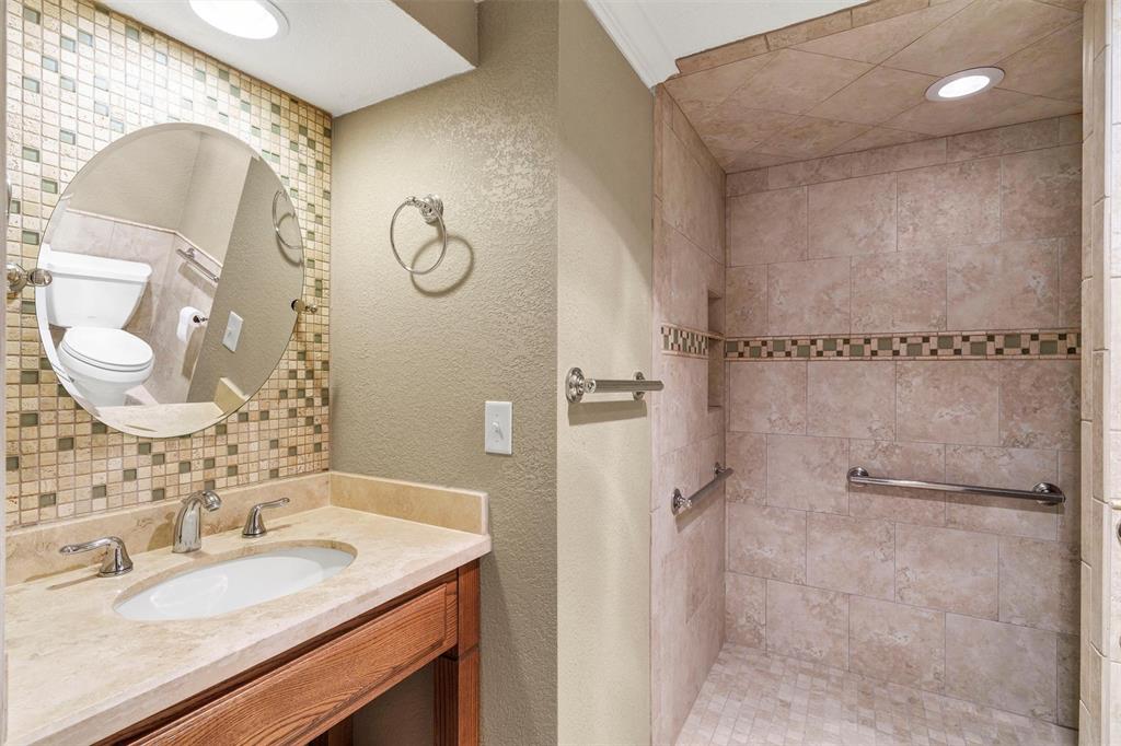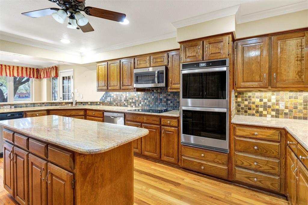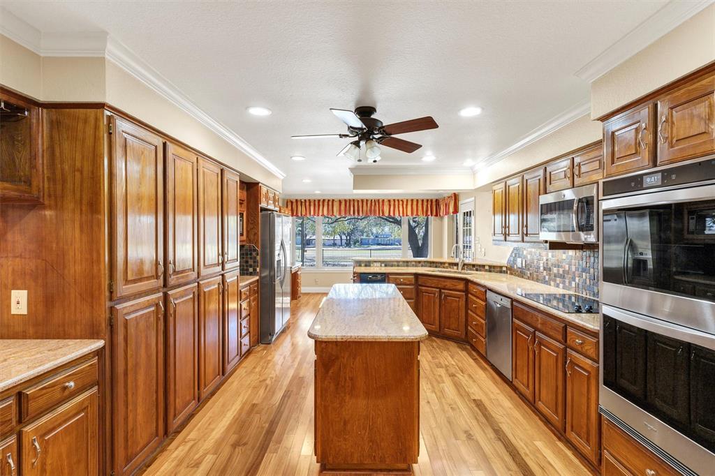 The kitchen is complete with double ovens, two sinks, a wet bar, and a built-in wine rack! A handicap-accessible guest suite, a beautiful study, and split bedrooms are also included. The oversized primary retreat features an adjoining bath with a jetted tub and bidet for a spa-like experience.