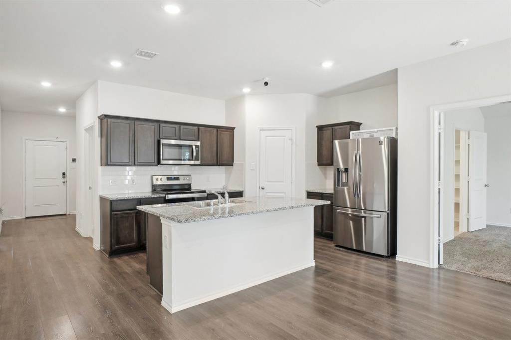 100-Day Home Warranty coverage available at closing. Welcome to this fabulous area! This home has Fresh Interior Paint. Discover a bright interior tied together with a neutral color palette. You'll love cooking in this kitchen, complete with a spacious center island and a sleek backsplash. and a walk-in pantry ensures ample storage for your culinary needs. Relax in your primary suite with a walk-in closet included. Take advantage of the extended counter space in the primary bathroom complete with double sinks and under sink storage. Take it easy in the fenced in back yard. The covered sitting area makes it great for BBQs! Don't miss this incredible opportunity. This home has been virtually staged to illustrate its potential.