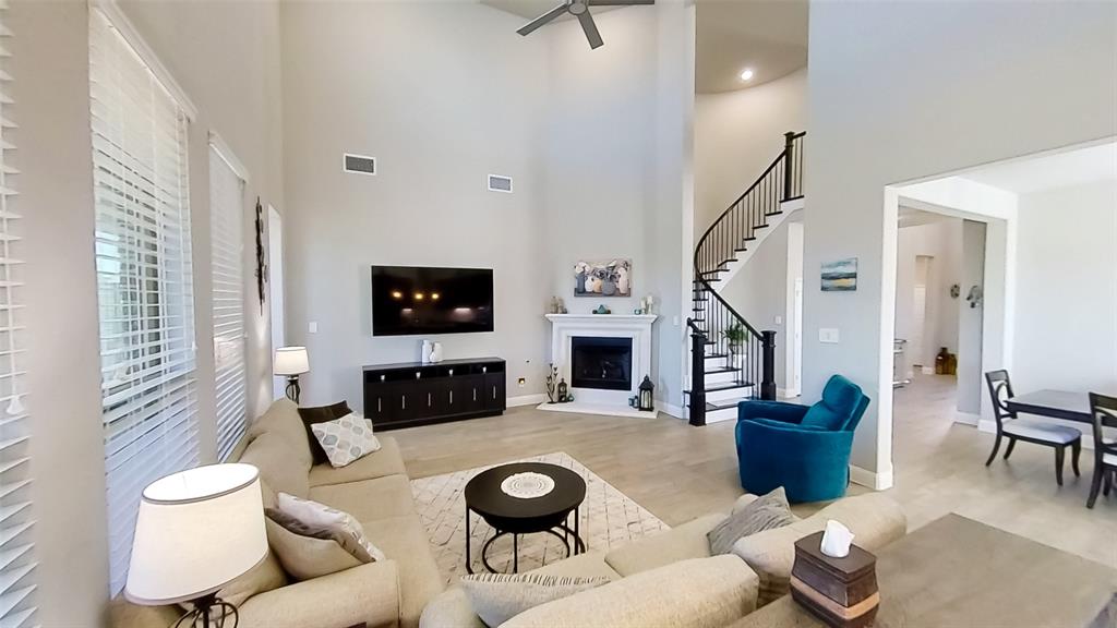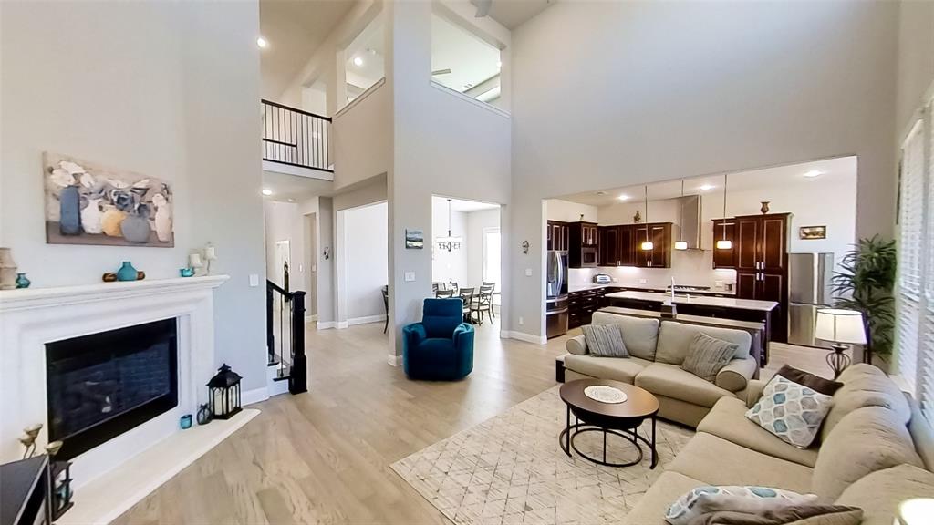 Upon entering, you’re greeted by a grand foyer with soaring ceilings and abundant natural light. The main level features an open-concept layout, seamlessly connecting the spacious living room with a cozy fireplace, a gourmet kitchen with high-end stainless steel appliances, granite countertops, a large island, and a formal dining area perfect for entertaining.