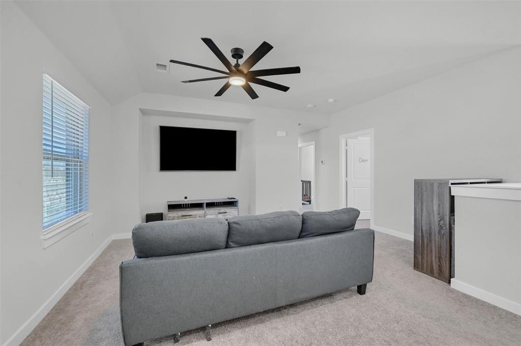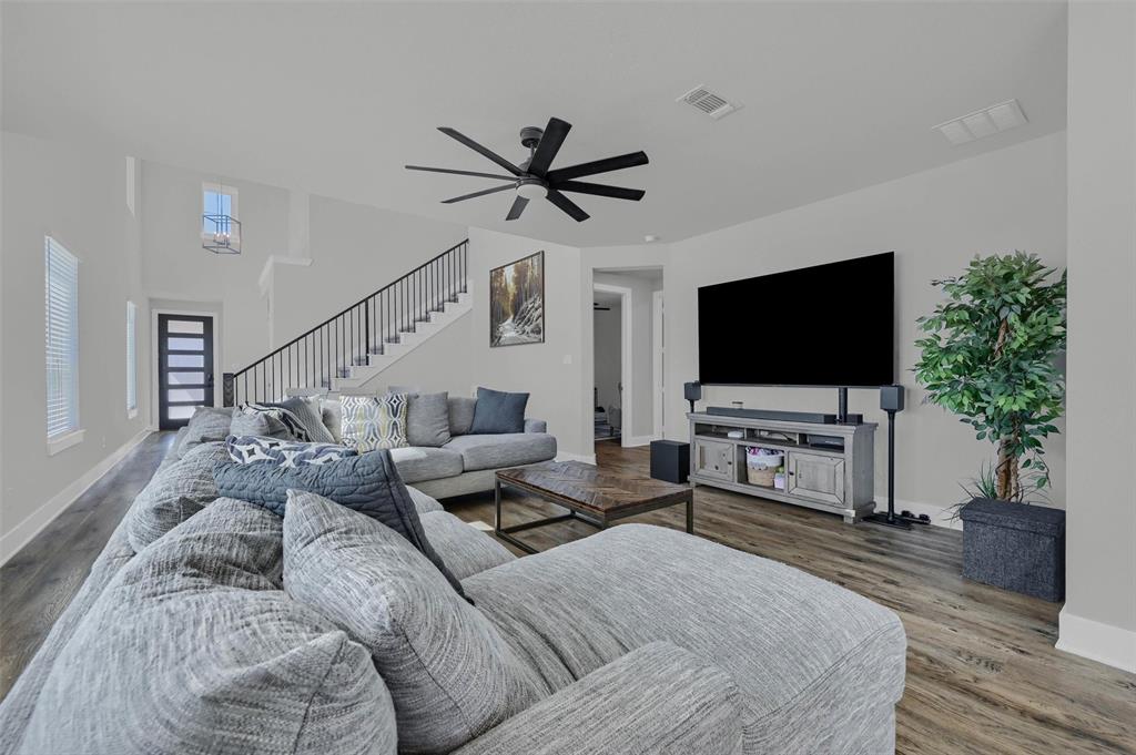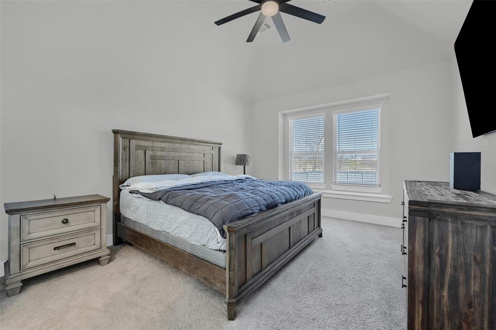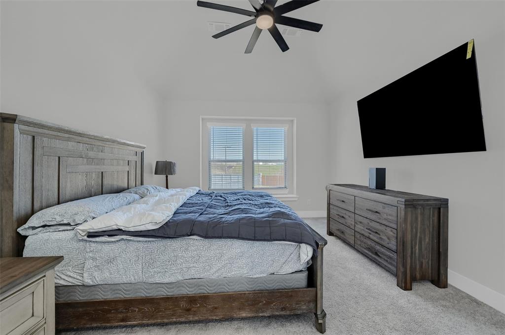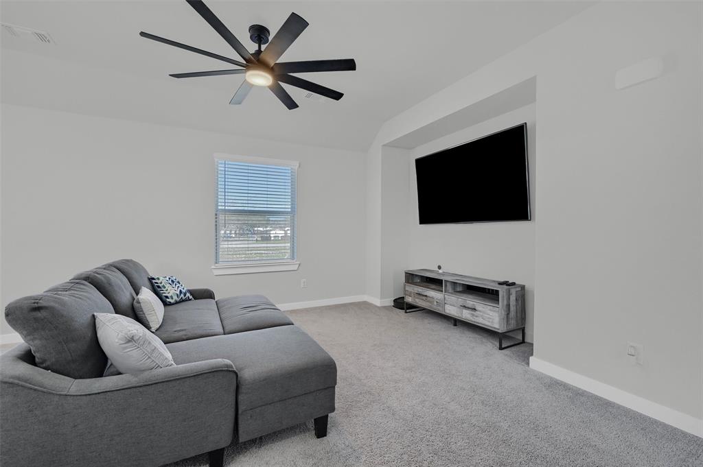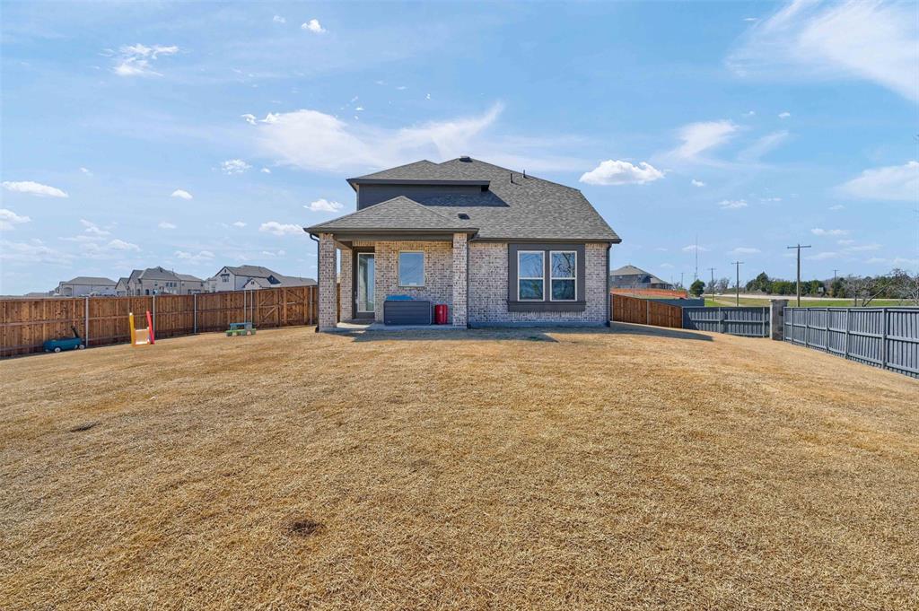 Stunning 4 bedroom, 2.5 bath home in the new Bel Air Village development. This master-planned community spans 300+ acres and offers a diverse array of amenities blending nature and convenience. Built by Highland Homes, this residence sits on one of the largest lots in the neighborhood, tucked away at the end of a quiet cul-de-sac with no through traffic, ensuring maximum privacy. Upon entering you’ll notice the impressive vault and large dormer window filling the spacious family room with natural light. The open design flows seamlessly into the kitchen, equipped with stainless gas appliances, a large island, and views of the backyard. The walk-in laundry room is accessible from the hallway and offers plenty of room for a full-size washer & dryer along with additional shelving. The primary bedroom offers a walk-in closet and an ensuite bath with double vanities, a soaking tub, and a separate glass-enclosed shower. The guest bedrooms are well appointed and share their own full bath. A versatile flex room on the main floor can be adapted as a home office or additional bedroom. Outside, you’ll find a generously sized covered back porch overlooking the fully fenced backyard. The 3-car garage is designed for both convenience and durability, featuring epoxy-coated floors at each bay for easy maintenance.