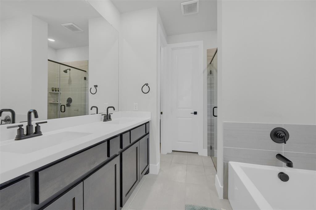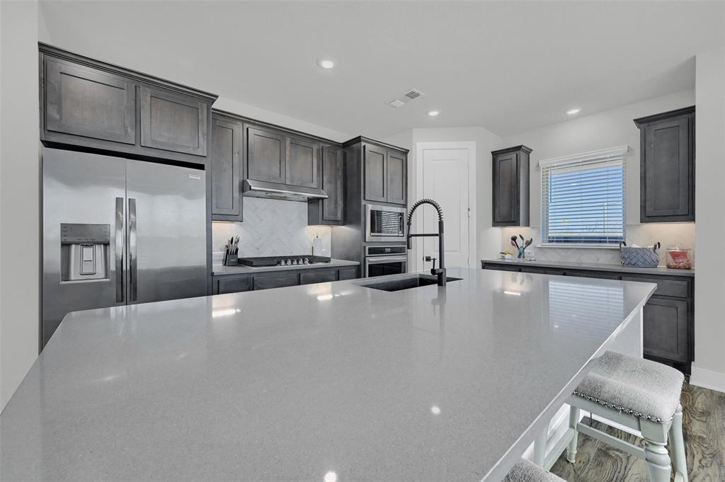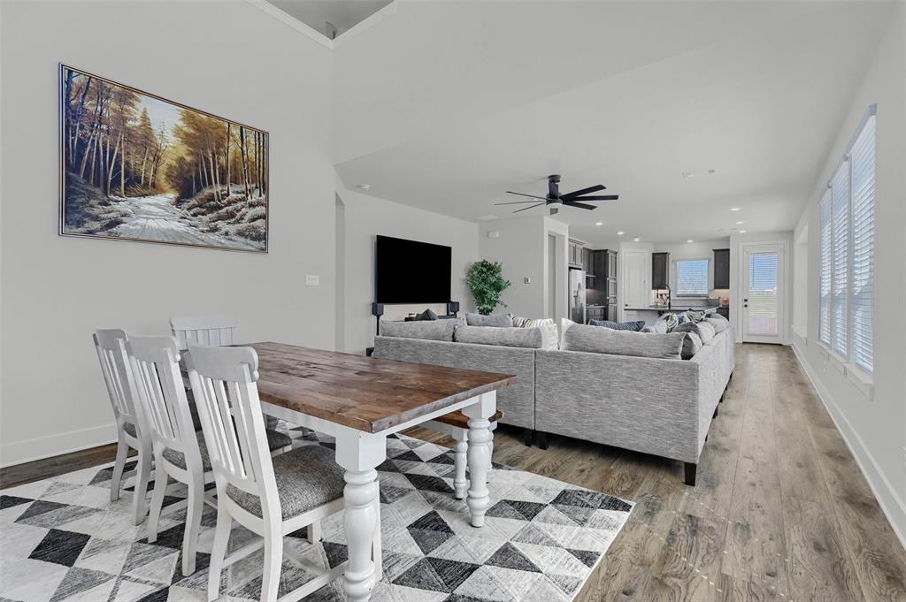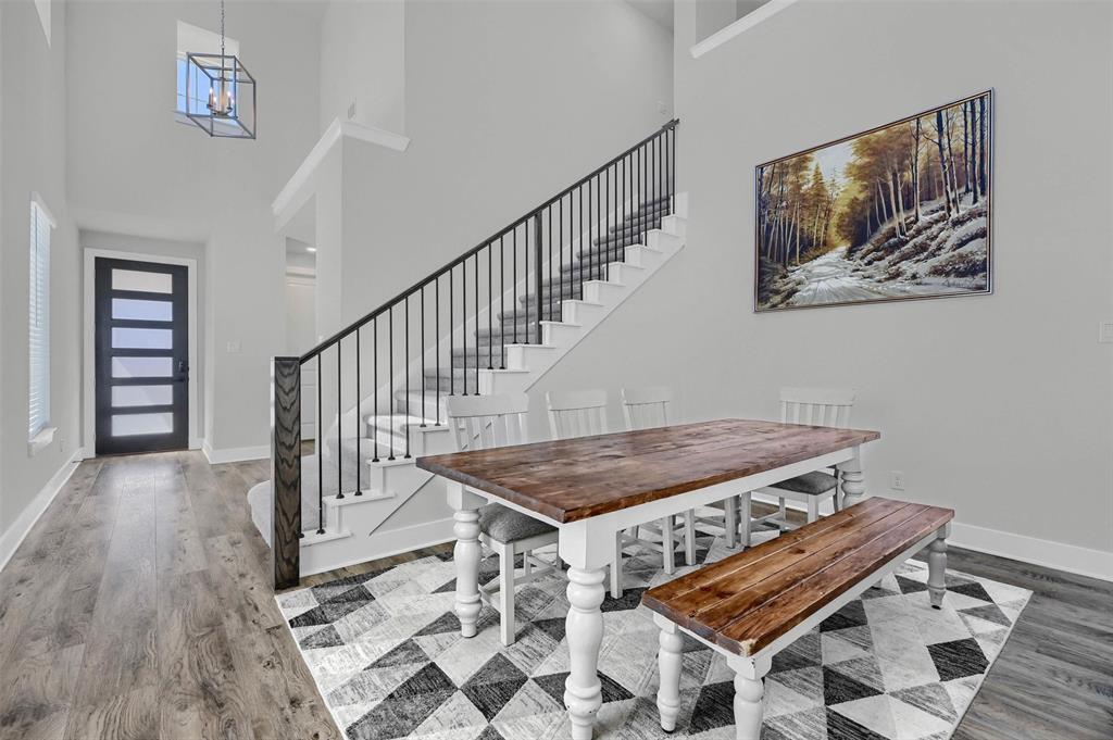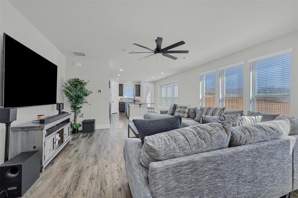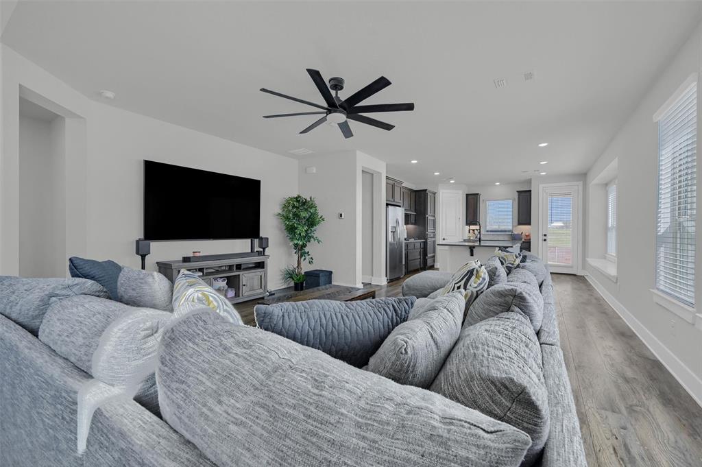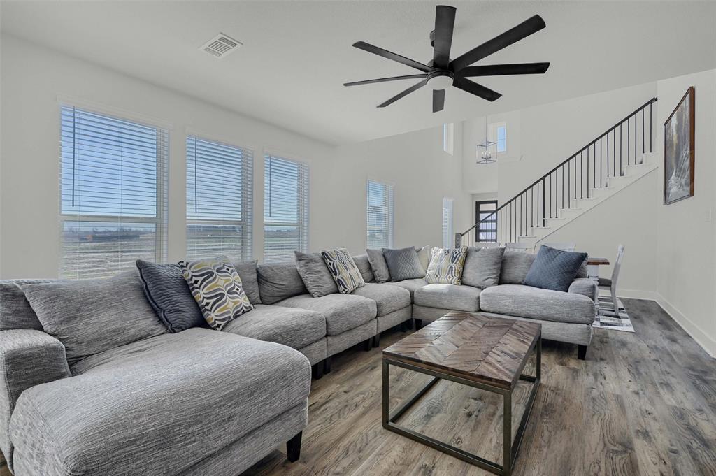 Stunning 4 bedroom, 2.5 bath home in the new Bel Air Village development. This master-planned community spans 300+ acres and offers a diverse array of amenities blending nature and convenience. Built by Highland Homes, this residence sits on one of the largest lots in the neighborhood, tucked away at the end of a quiet cul-de-sac with no through traffic, ensuring maximum privacy. Upon entering you’ll notice the impressive vault and large dormer window filling the spacious family room with natural light. The open design flows seamlessly into the kitchen, equipped with stainless gas appliances, a large island, and views of the backyard. The walk-in laundry room is accessible from the hallway and offers plenty of room for a full-size washer & dryer along with additional shelving. The primary bedroom offers a walk-in closet and an ensuite bath with double vanities, a soaking tub, and a separate glass-enclosed shower. The guest bedrooms are well appointed and share their own full bath. A versatile flex room on the main floor can be adapted as a home office or additional bedroom. Outside, you’ll find a generously sized covered back porch overlooking the fully fenced backyard. The 3-car garage is designed for both convenience and durability, featuring epoxy-coated floors at each bay for easy maintenance.
