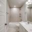 Upstairs, the private primary suite provides a serene retreat, complete with separate vanities, sleek 12x24 tile, a large glass-enclosed shower, and an expansive walk in closet. The second floor also includes a utility room, two additional bedrooms, and a well appointed bathroom with double sinks. blinds and fence included