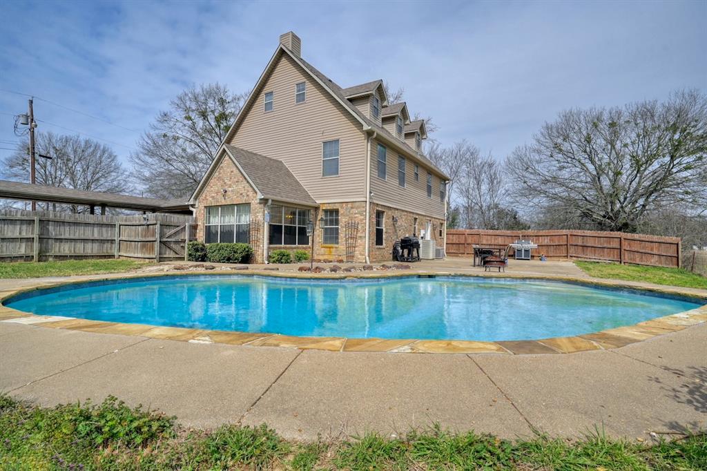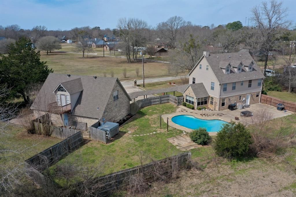 *4 bed, 3.5 bath main home PLUS detached 1500 square foot 1 bed, 1 bath apartment PLUS home theatre* Welcome to 769 S Maple Ave, a one-of-a-kind property designed for those who love to entertain and enjoy spacious living. This stunning three-story home offers four bedrooms, three and a half bathrooms, and over 2,700 square feet of beautifully designed living space. On the main floor, you’ll find all of your primary living areas, including a spacious living room, a gourmet kitchen with granite countertops and stainless steel appliances, and a conveniently located half bath. The second floor is home to the owner’s suite, complete with an attached ensuite bathroom, as well as two additional bedrooms and a second full bath. The third floor offers a private retreat with the fourth bedroom and a third full bath, perfect for guests or a private office space. Enjoy spectacular multi-story views overlooking the in-ground gunite swimming pool, creating the perfect backdrop for outdoor gatherings and summer relaxation. The detached two-story garage boasts an additional 1,500 square feet of versatile living space downstairs. The downstairs apartment features one bedroom and one bath, making it ideal for guests, rental income, or multi-generational living. The upstairs space is a massive home theater complete with a built-in kitchenette, offering the ultimate entertainment experience. Whether you need a homeschooling setup, a private space for a college student, a short-term or long-term rental opportunity, or an in-law suite, this space has limitless potential! Situated on a quiet cul-de-sac on .785 acres, this home offers privacy and space while still being centrally located in Van, TX. Enjoy the small-town charm with the convenience of easy access to I-20, making commutes to nearby cities effortless.