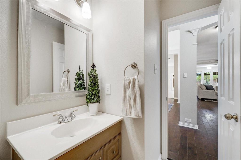 Come see this beautiful ONE AND A HALF STORY in the Oakmont Corinth golf community! This home boasts an open floor plan with a large kitchen that has an oversized breakfast area and overlooks a very large living room with a cozy fireplace. You will love the stylish subway tile in the kitchen that pairs nicely with granite countertops and numerous white cabinets. Custom sliding drawers in the lower cabinets, additional cabinets along the partition into the living area, an extra pantry and additional closets throughout the house are a homeowner's dream for storage. This home has all the functions needed such as a nicely positioned dining area, a classic office with French doors, and 3 secondary bedrooms (on the main floor). The owner's suite is spacious with an extra space for a seating area or your favorite exercise equipment and a king-sized walk-in closet. The master bathroom has been updated with modern tile, countertops and sinks, and a fantastic freestanding bathtub. Upstairs, find an oversized flex space, perfect for a game room, guests, a second office, or a media room! Would you like to have more time with friends and family outdoors? This home is perfect with a large covered porch area, and wood-burning fireplace, and lush landscaping. Come see it before it gets under contract!