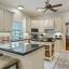 The kitchen serves as the heart of the home, featuring granite countertops, stainless steel appliances, a double oven, and ample cabinets for storage. The primary suite is highlighted by California closets and a luxurious bathroom adorned with travertine floors and a travertine-lined shower.