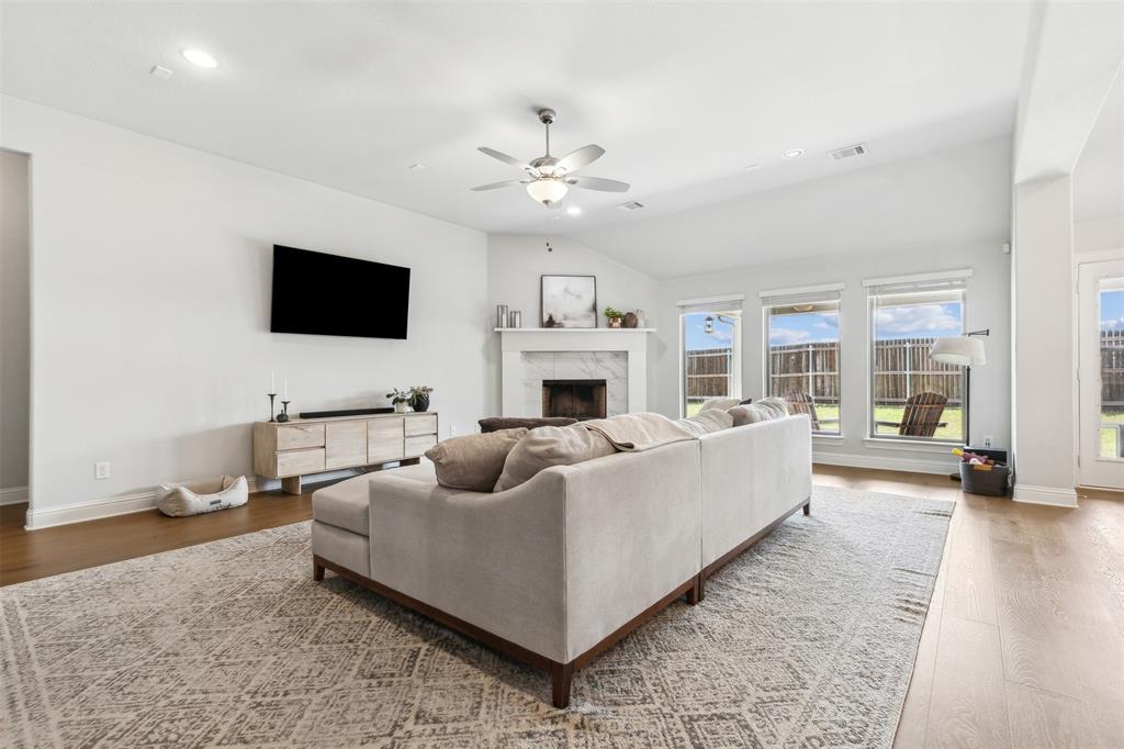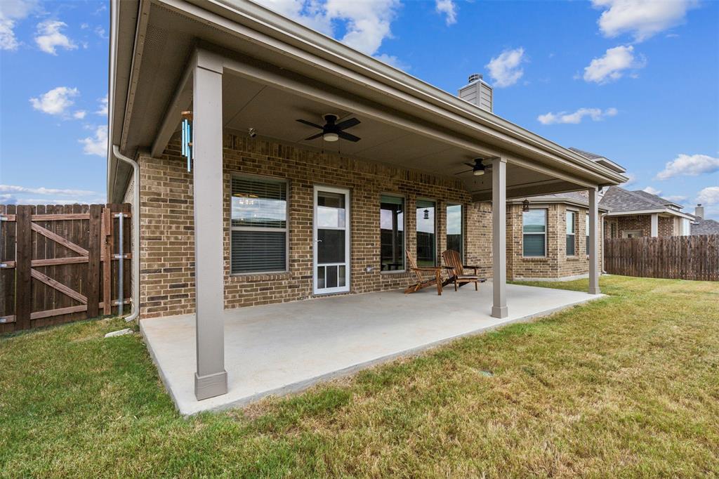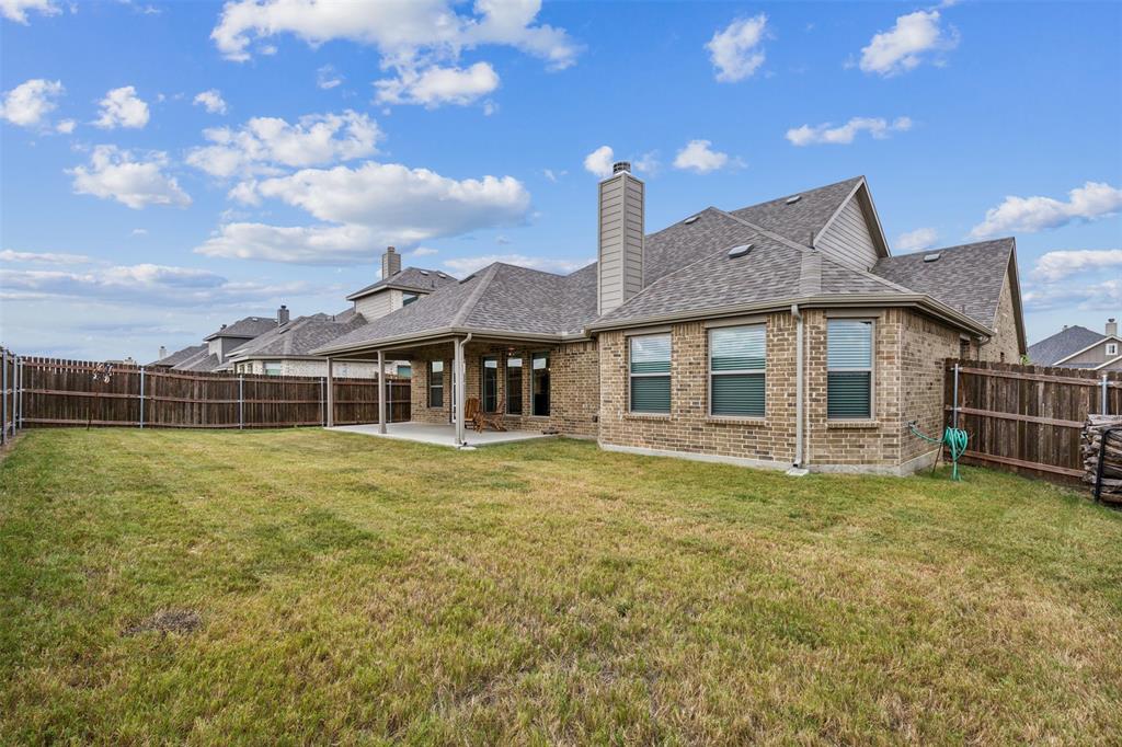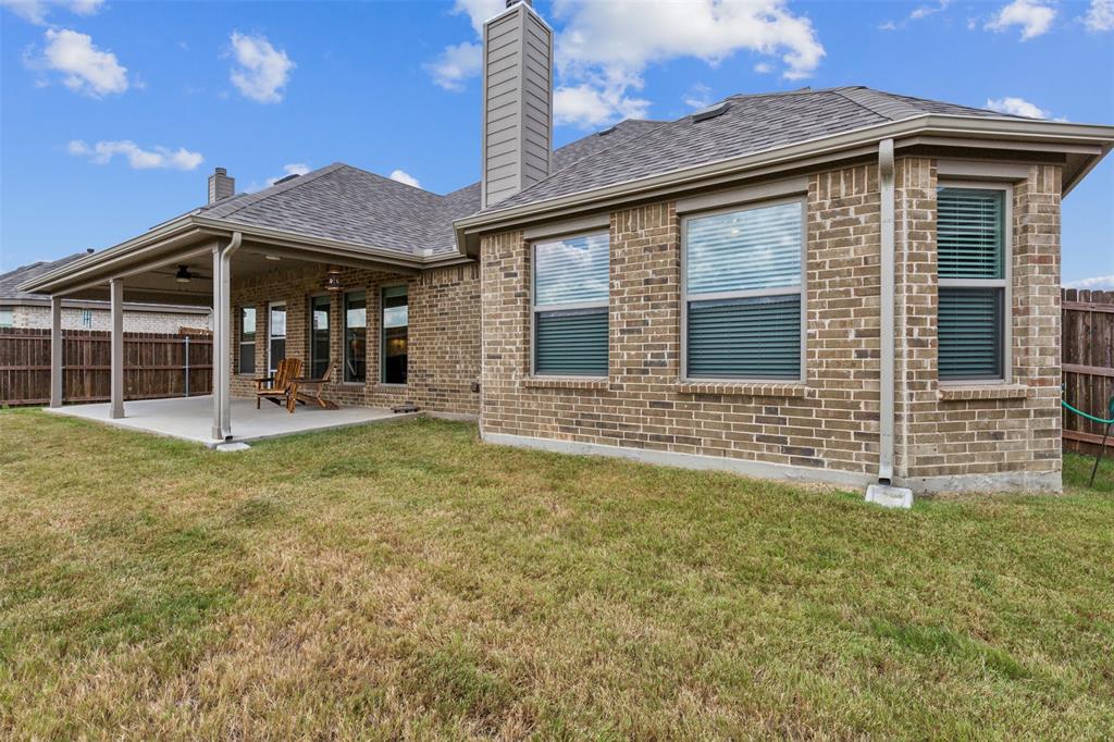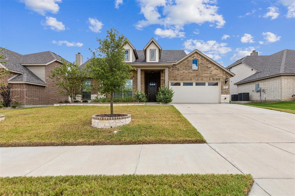 This beautifully upgraded John Houston Home is one to see! 3 bedrooms, 2 bathrooms, plus an office, open concept floor plan with tile surround fireplace, upgraded pendant lighting in kitchen, granite countertops, white cabinets, island bar, walk in pantry, coffee station, custom tile in laundry room, stainless steel appliances, hardwood floors, and HUGE walk-in closets in each bedroom. Additional upgrades include extended covered patio, extended primary bedroom including bay windows, garden tub, bench in shower, permanent exterior lighting installed for holiday features or security lighting. The quantity of windows provides the perfect amount of natural lighting throughout the year. A community park and pool are conveniently located at the front of the neighborhood, and this lovely home is located just minutes from downtown Waxahachie where you can visit local small business boutiques, coffee shops, and restaurants. Waxahachie is calling your name. Come visit today