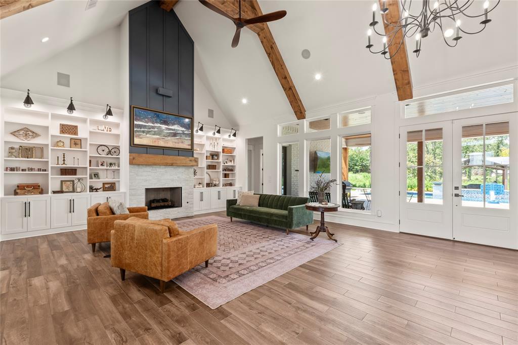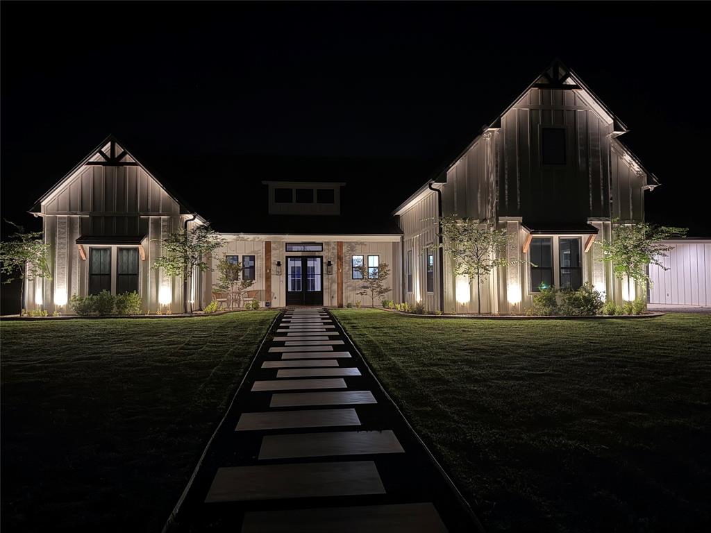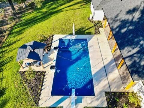 Highspeed internet and city utility convenience meets solitude in this Brownsboro estate, on 8 sprawling acres. Designed by Janey Angelo, cathedral-style architecture floods the interiors with soft natural light. Home features 4 beds, 3.5 baths, a mother-in-law suite, and an upstairs loft overlooking large game room. The master wing offers a bedroom with ensuite, walk-in closet, personal gym, and a private back entrance. The kitchen dazzles with custom features, double ovens, 6 burner gas stove, built in ice maker, walk in pantry, enormous granite island, and farmhouse sink overlooking the pool and pastures. Luxe upgrades include solid wood doors, built in cabinets and storage, surround sound, and a whole-home generator. Outside, an oversized covered patio leads to a heated pool, spa, and gazebo. The grounds include a pond, pastures, circle drive, a 3-car garage, EV charger, and a pole barn. Luxury extras like up-lighting, landscaping, and a stone gate entrance enhance its grandeur.