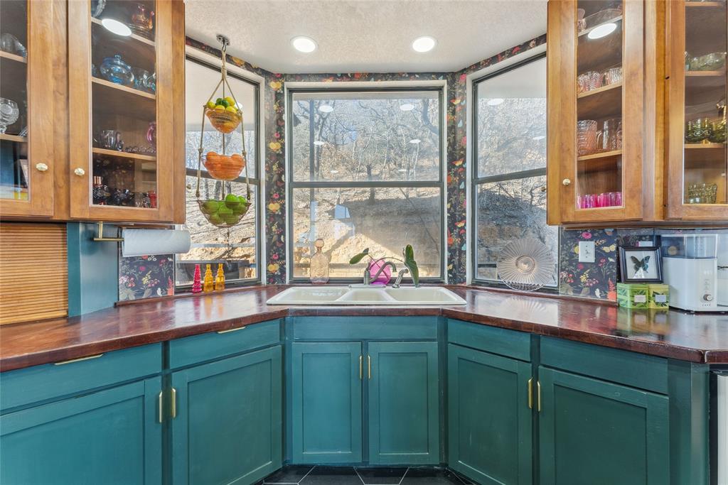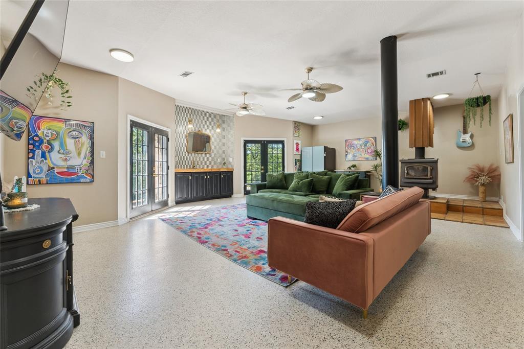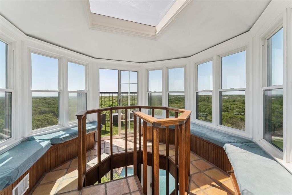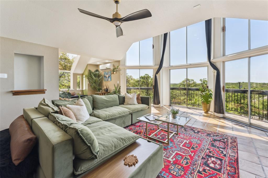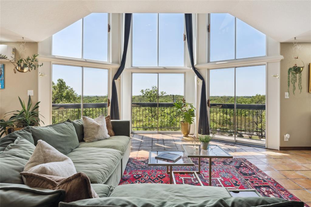 Welcome to 1412 Apache Court—an architectural masterpiece inspired by Frank Lloyd Wright. Perched atop Caddo Peak, the highest point in Johnson County, this custom three-story home offers unparalleled privacy and panoramic views. It's design evokes the charm of a unique treehouse while celebrating bold and timeless style.