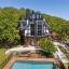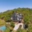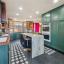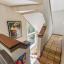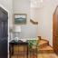 Inside, a charming Dutch door reveals interiors featuring original hardwood accents that exude warmth and timeless elegance. The open-concept second floor includes a kitchen with teak countertops and walnut cabinetry, seamlessly blending modern design with preserved charm. The great room features walls of windows that bathe the space in natural light—creating a vibrant setting perfect for entertaining.