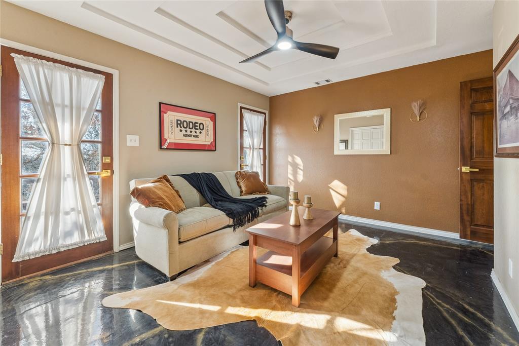 A striking walnut spiral staircase ascends gracefully, leading to an exclusive rooftop retreat to enjoy stunning Texas sunsets. Located just 25 miles south of Downtown Fort Worth—with no HOA and just minutes away from the Bluejack Ranch, a golfing legacy! This beauty is being sold with most of the furnishings, so just bring your personal items and it's ready to call home!