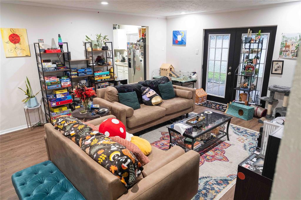 Discover this beautifully updated home nestled in the vibrant heart of Lewisville, just a short stroll away from water parks, schools, and parks. Step inside to find an inviting space adorned with fresh paint and an abundance of natural light. The home boasts modern hardware, stylish fixtures, and a luxurious frameless glass shower in primary bathroom. Enjoy the spacious yard featuring a significant workshop, perfect for hobbies or storage, along with a metal patio cover that provides the ideal setting for morning coffee. The well-designed floor plan includes a cozy eat-in kitchen and a welcoming living area that seamlessly flows out to the patio. Retreat to the tranquil master suite at the back of the home, which offers a charming Pottery Barn-inspired bath.