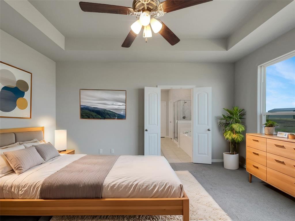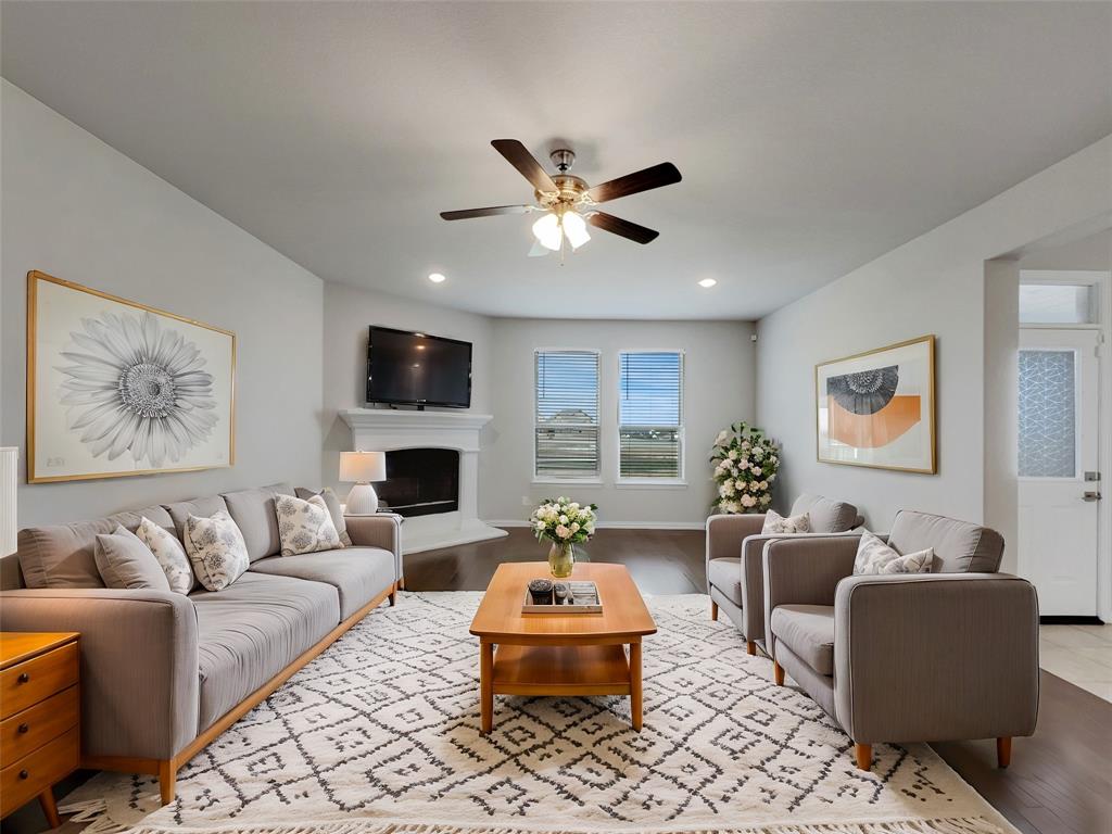 Welcome to this stunning home with a cozy fireplace, complemented by a natural color palette throughout. The kitchen boasts a center island and a nice backsplash, perfect for cooking and entertaining. The spacious primary bedroom features a walk-in closet for ample storage. The primary bathroom offers a separate tub and shower, double sinks, and good under sink storage. Step outside to the covered sitting area in the backyard, ideal for relaxing or dining alfresco. Don't miss out on the opportunity to make this beautiful home yours! This home has been virtually staged to illustrate its potential.