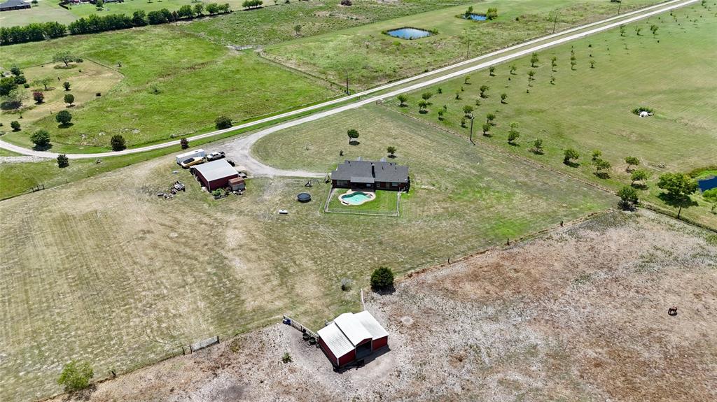 Escape to peaceful country living on 13.045 private acres in highly desirable Rockwall County! Charming brick home with 3 spacious bedrooms, 2.5 bathrooms, and open concept living & kitchen area with cozy wood-burning fireplace. Large windows overlook your own pool & covered porch. A versatile bonus room offers possibilities, from a formal dining room to a game room or office. Primary suite with private patio entrance, jetted bathtub, walk-in shower, & double vanities. Convenient laundry room has plenty of storage, half bath, and side door entrance. 1200 sq ft red iron constructed shop with overhead door & concrete. 1000 sq ft pole barn with 4 stalls & concrete slab. Ample space for projects and storage, while the land offers plenty of room for outdoor enjoyment. Easy access to Rockwall & Dallas, this country retreat is perfect for those who crave privacy with convenience. Plus, the property is Ag-exempt and features a modern aerobic system. Don’t miss out on this rare opportunity!