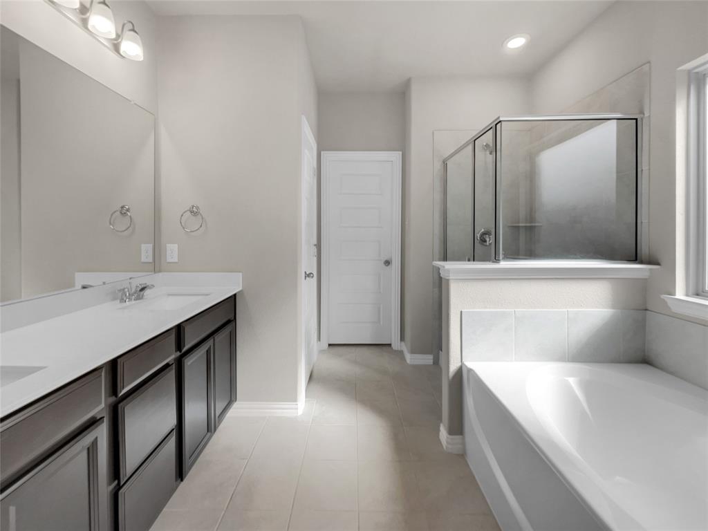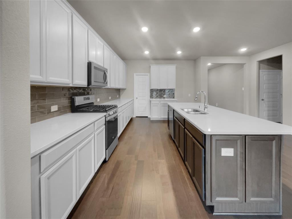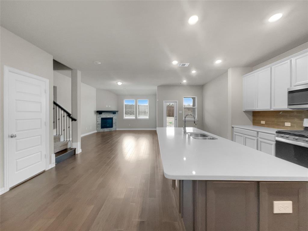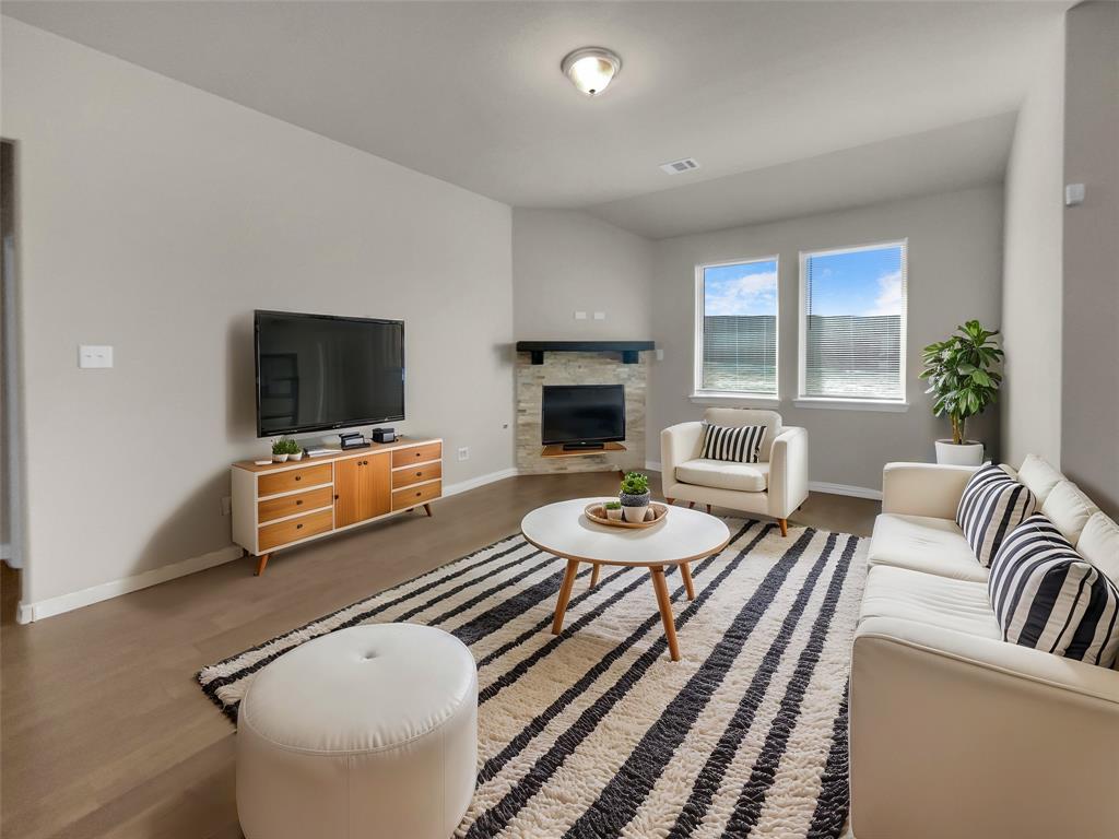 Welcome to this charming home featuring a cozy fireplace, a soothing natural color palette, and a spacious center island in the kitchen. The kitchen also boasts a nice backsplash and new appliances, making it a chef's dream. The Primary bedroom includes a walk-in closet and the primary bathroom offers a separate tub and shower, double sinks, and good under sink storage. Step outside to the fenced backyard with a covered sitting area, perfect for relaxing or entertaining. Don't miss out on this gem!