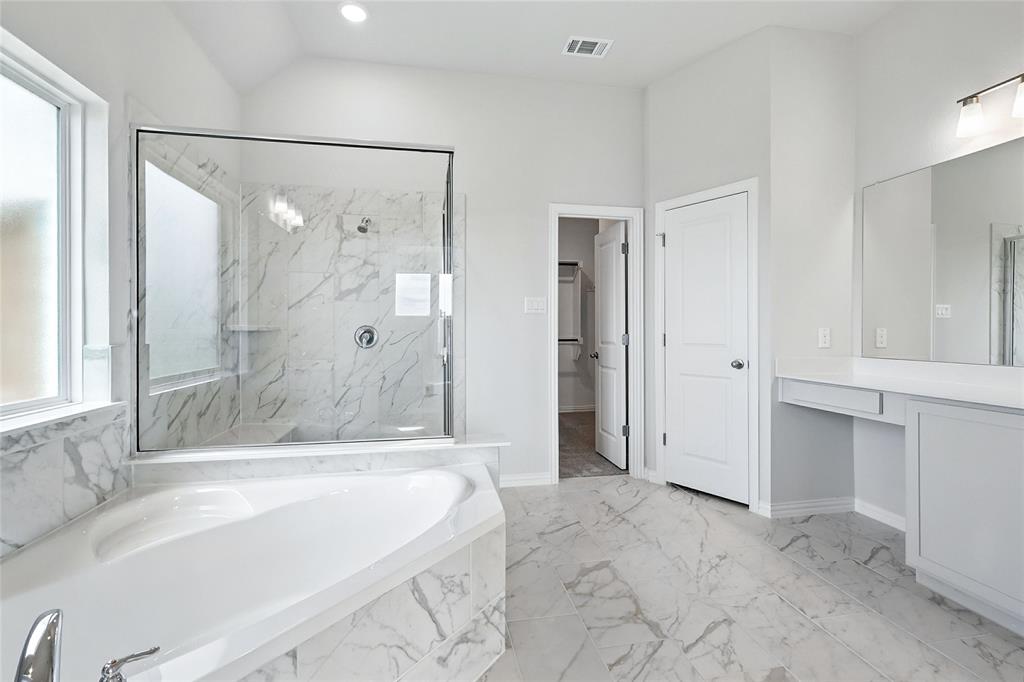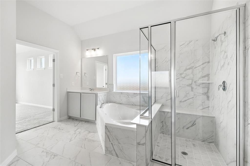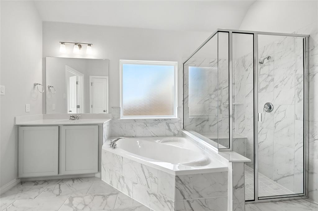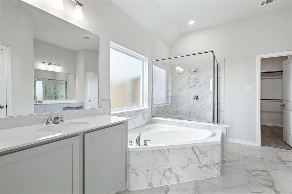 Enter into luxury and practicality with the Rosewood floor plan, a remarkable new construction home by Brightland. Spanning an expansive 3,064 square feet, this two-story residence is designed to enhance your family’s lifestyle. The modern kitchen is a chef's dream, featuring upgraded cabinets, a generous center island, and top-of-the-line stainless steel appliances, perfect for both cooking and entertaining family and friends. The highlight of this home is the stunning two-story great room, which boasts soaring vaulted ceilings and large, window-lined walls that flood the space with natural light, elevating the home’s refined ambiance. Unwind in the oversized owner's suite, designed as a private sanctuary, complete with a luxurious ensuite featuring a double vanity, a soaking tub, a separate large shower and a spacious closet for all your essentials. Conveniently located on the main floor, a second bedroom is an ideal retreat for guests or family members. Venture upstairs to discover three more generously sized bedrooms and a stylish full bath, creating an inviting haven for everyone. Situated in the sought-after Wildflower Ranch, a master-planned community nestled within the esteemed Northwest Independent School District, this home offers a lifestyle beyond compare. Take advantage of resort-style amenities, including a lazy river, a community center, playgrounds, a scenic trail system, and even an onsite elementary school, everything your family needs for an active, enriching environment! Experience the vibrant, neighborly atmosphere with an array of parks, community paths, and the delightful lazy river, making every day feel like a vacation. Located in North Fort Worth, Wildflower Ranch ensures an easy commute to downtown Fort Worth, the Alliance Airport corridor, and the medical districts off Golden Triangle Boulevard. Don’t miss the chance to call this extraordinary home your own!