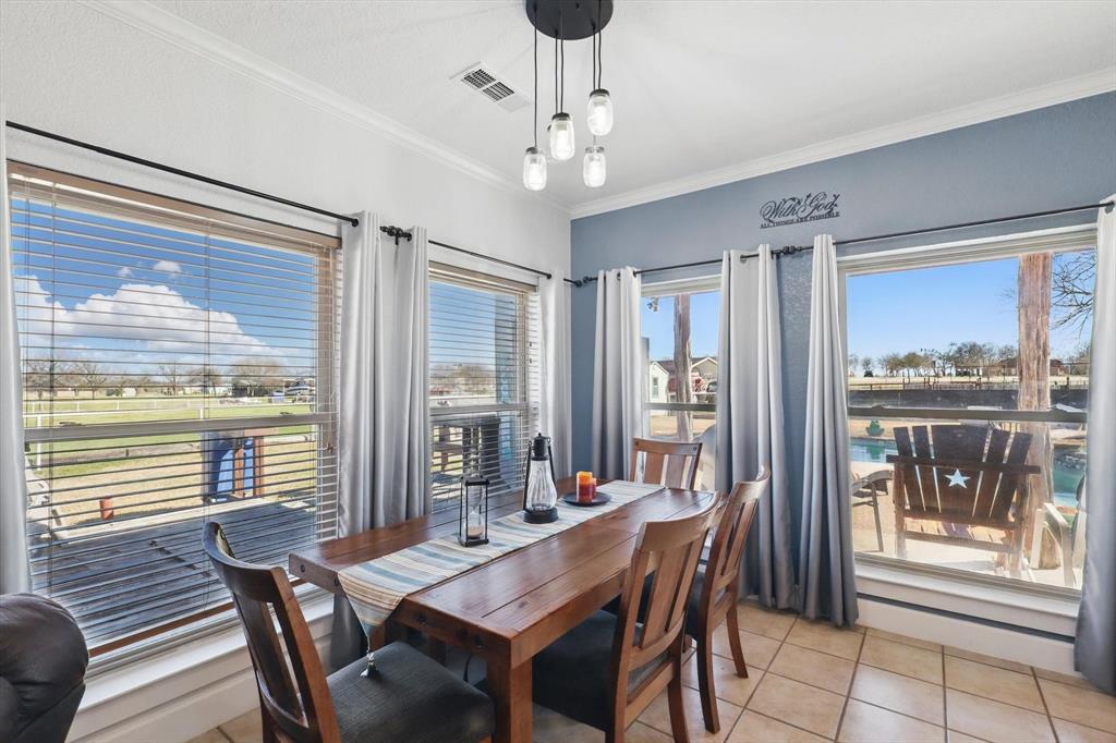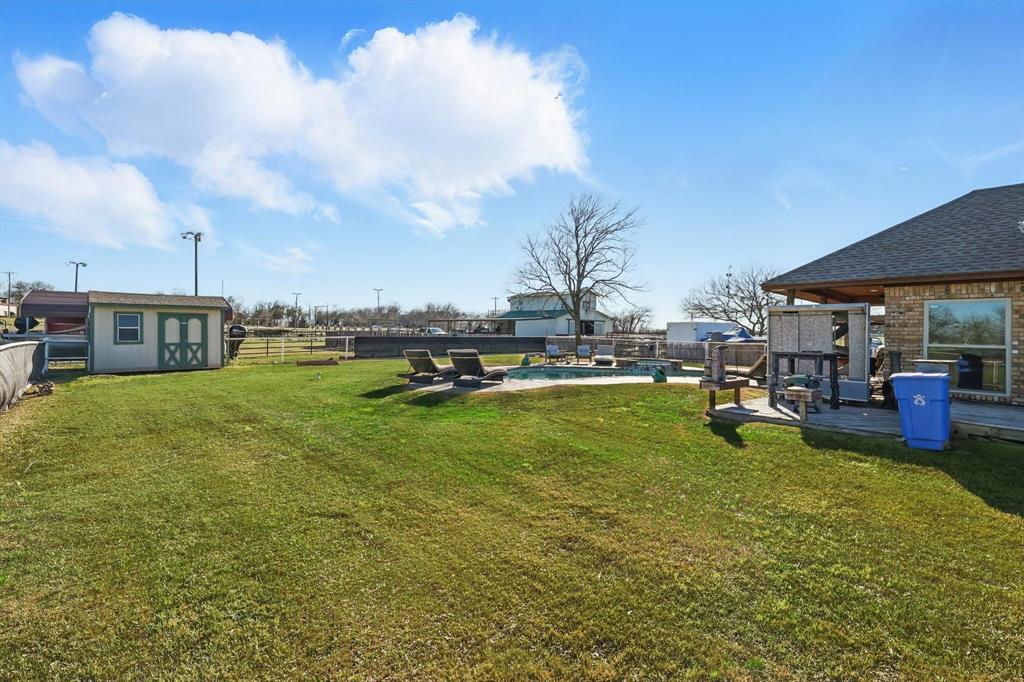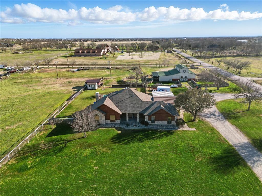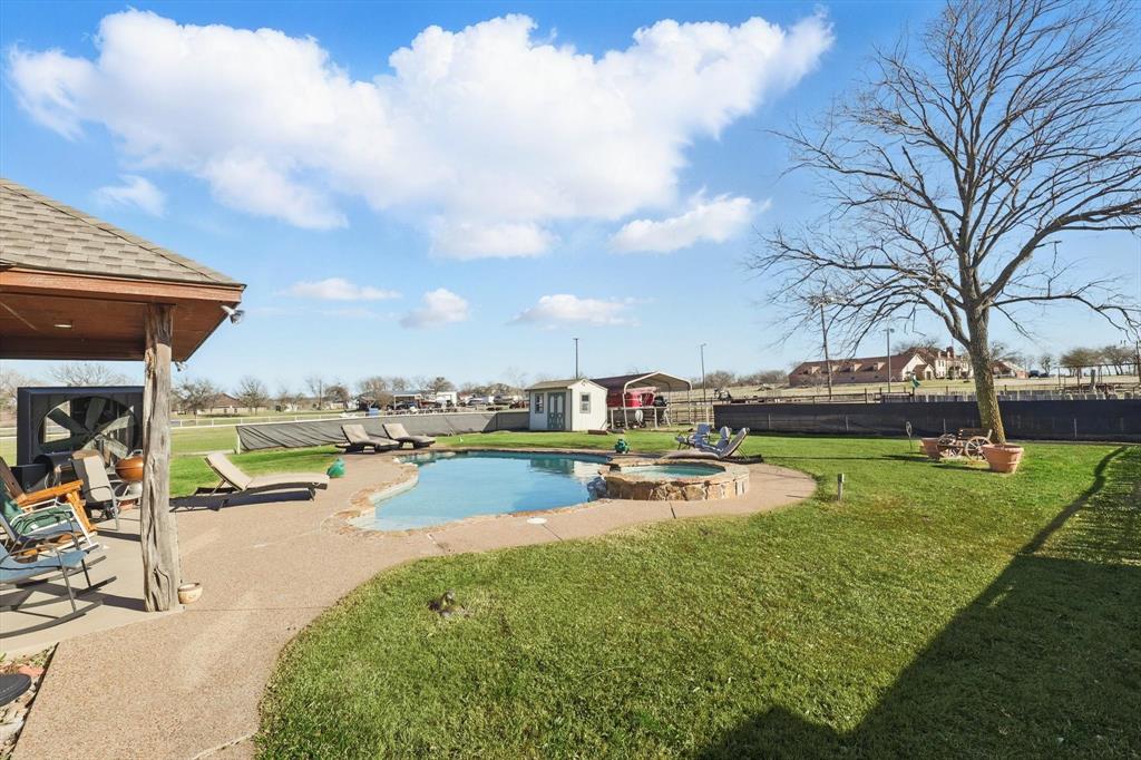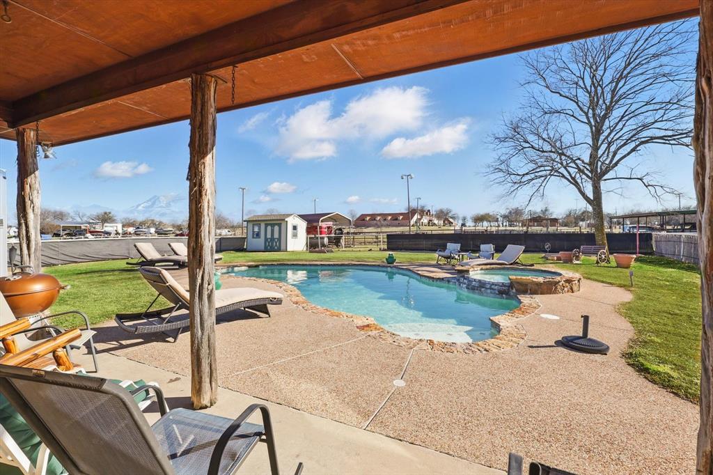 Horse-friendly property on 3.23 acres with a spacious house, stable barn, and in-ground pool. Just outside Krum City Limits, this sprawling 3.23-acre corner lot offers the perfect blend of rural and convenient access to major highways. This property features a 4-bedroom, 3-bathroom home that provides plenty of room for family living. The open layout and thoughtful design offer comfort and functionality, while the covered back porch provides the perfect space for relaxing and enjoying the in-ground pool and spa, complete with beautiful stone and pool decking. Providing ample space for horses and equipment with the 5 stall barn with tack room. The property is fully fenced for horses, ensuring they have the freedom to roam in a safe and secure environment. The three-car carport with a circular drive ensures ample parking for guests, while providing convenience and ease of access. Additionally, above the stable barn is a versatile apartment space, ideal for rental income or as a private retreat for guests or family members.