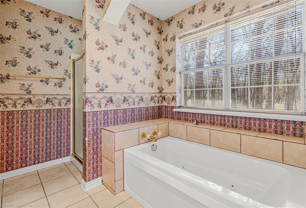 Discover serene living on this picturesque 1-acre property boasting two distinct homes. The craftsman-style main house, offering 1,737 sqft, greets you with a large wraparound porch. Inside, find 3 bedrooms and 2 baths, featuring a functional kitchen nestled between a formal dining area and a bay-window breakfast nook. The airy living room, with its cozy fireplace and wall of windows, overlooks the covered back porch and inviting pool. The split bedroom layout offers a private primary suite with abundant natural light, a spacious walk-in closet, and ensuite bath with a jetted tub, separate shower, and dual sink vanity.