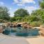 Step outside to the resort-style backyard, where an oversized covered patio with a built-in grill overlooks the sparkling heated saltwater pool, complete with a grotto, water features, an attached spa, and fire pits—perfect for year-round enjoyment. The beautifully landscaped yard, framed by mature trees, provides privacy and tranquility.
