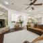 The chef’s kitchen features granite countertops, a center island, ample cabinetry, double sinks, and a built-in ice maker, seamlessly flowing into the spacious living room, complete with a stone fireplace, built-in entertainment center, and large windows offering views of the lush backyard oasis.