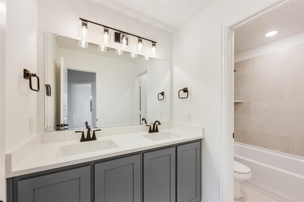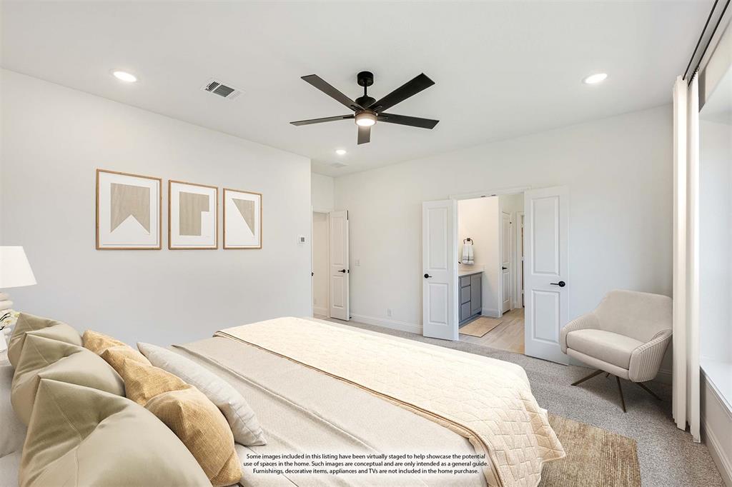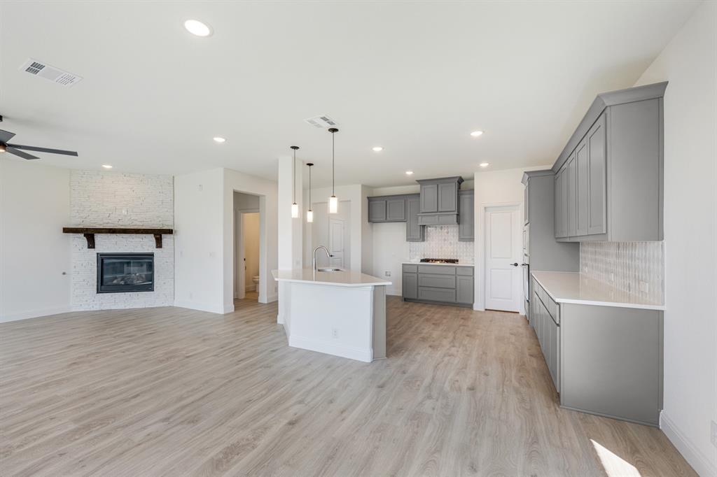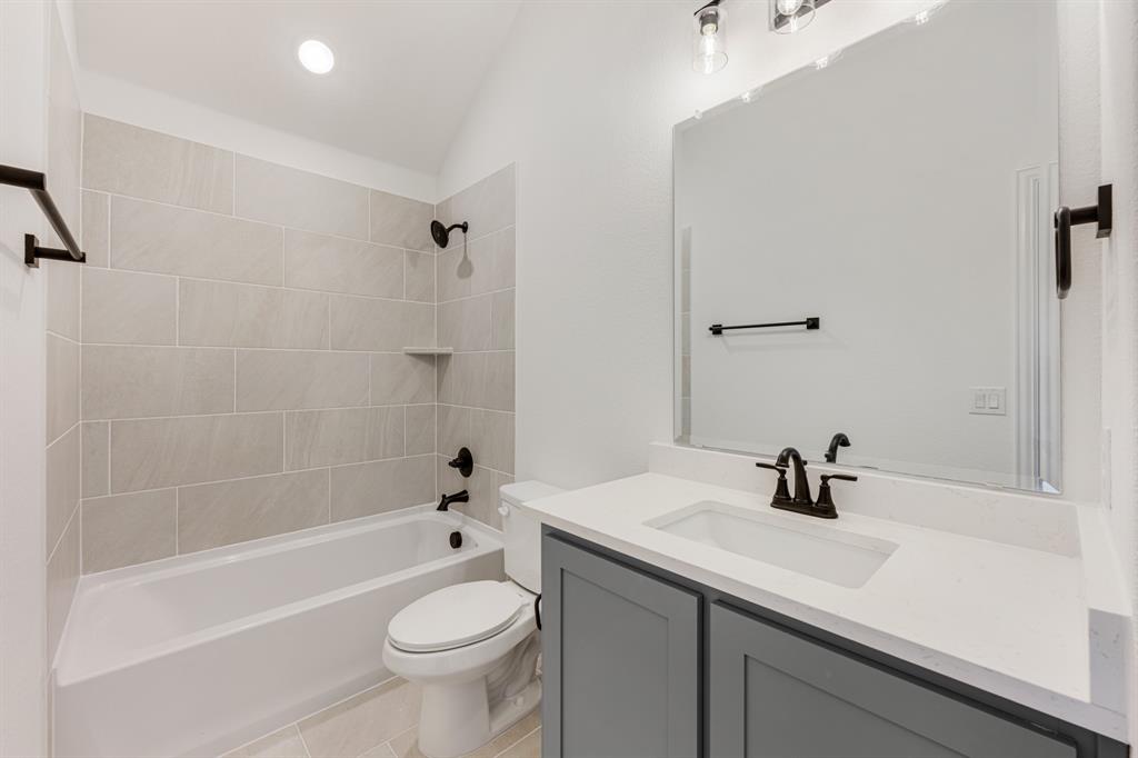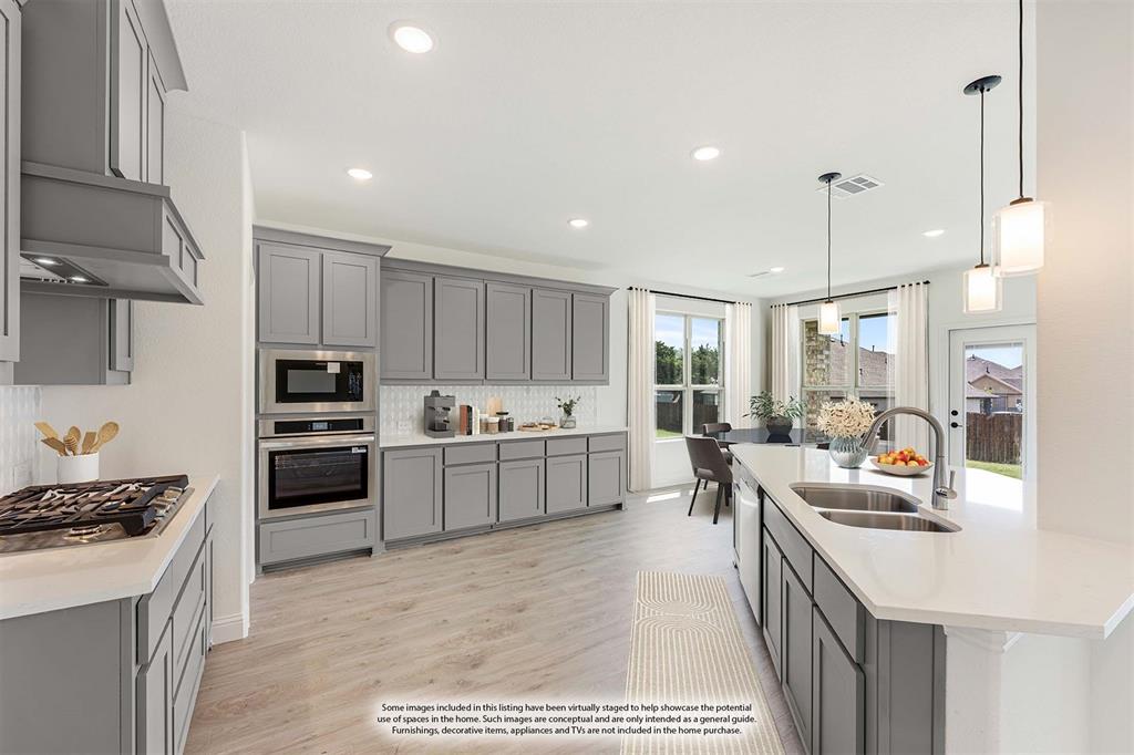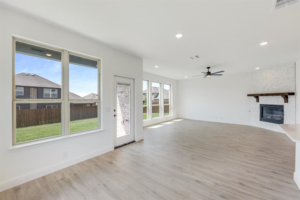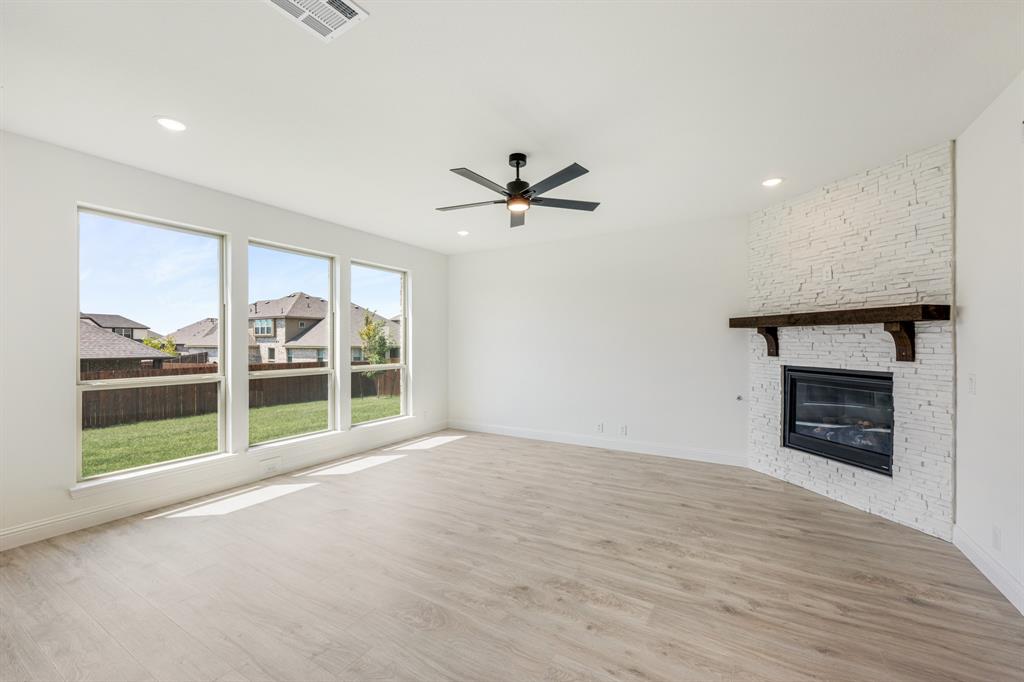 BRAND NEW HOME! NEVER LIVED IN. Move-in Ready! The Dewberry III plan by Bloomfield is a true showstopper, boasting an all-brick front elevation and a prime cul-de-sac location enhanced by professional landscaping for exceptional curb appeal. Inside, the open-concept living area offers both elegance and comfort, featuring Wood Laminate floors and a stunning Stone-to-Ceiling Fireplace with a cedar mantel and gas starter that anchors the Family Room, complete with a cozy window seat. The Deluxe Kitchen is thoughtfully designed with custom cabinetry, Quartz countertops, a gas cooktop, built-in all-gas SS appliances, pot and pan drawers, and a classic wood vent hood, while a Texas-sized pantry and extensive cabinetry provide impressive storage. The first-floor Primary Suite offers a serene retreat, while upstairs you'll find 4 spacious bedrooms, including a Jack and Jill bath, plus a versatile Game Room and even a charming balcony for outdoor relaxation. This home is further enhanced by 3 covered outdoor spaces for year-round enjoyment, and a tankless water heater ensures energy efficiency. A grand 8' front door adds a welcoming touch to this remarkable home. Contact Bloomfield at Trees Farm today to experience it for yourself!