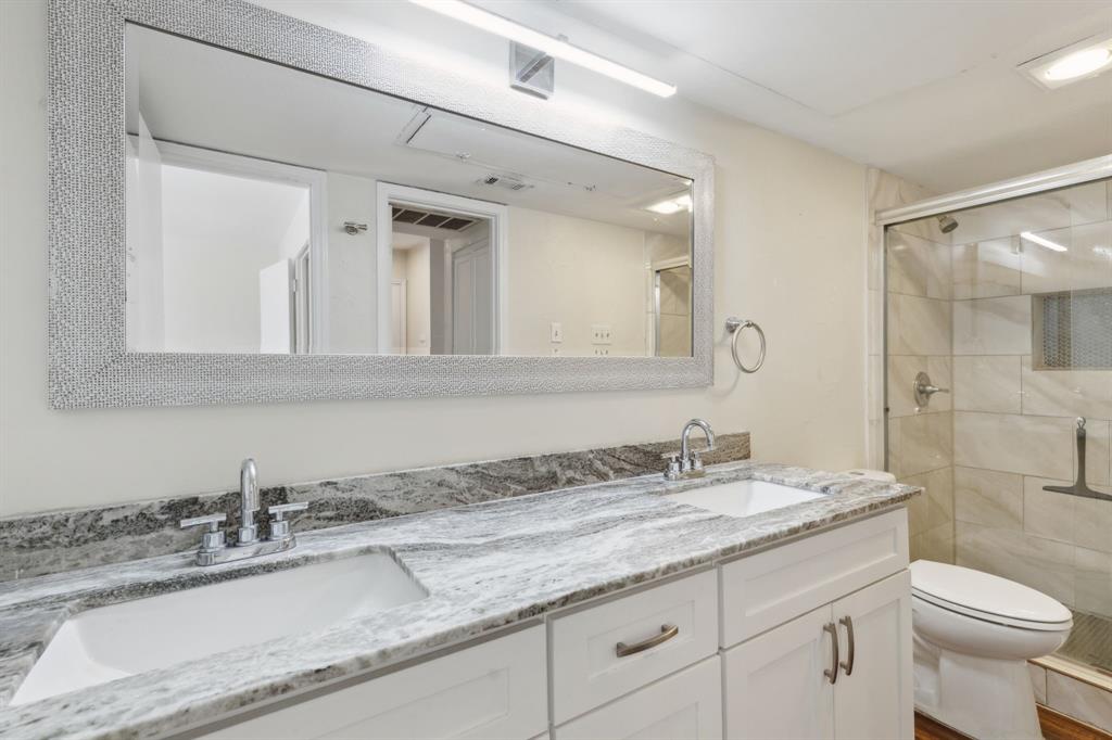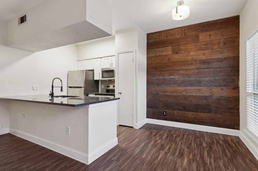 Welcome to this light-filled, open-concept first-floor condo, where walls of windows bring the outdoors in. This turn-key condo features an updated kitchen with sleek stainless steel appliances, a breakfast bar, and a stylish shiplap accent wall in the dining area. The spacious living room boasts a cozy wood-burning fireplace, perfect for relaxing. The primary en suite is a private retreat with a huge walk-in closet, dual sinks with granite countertops, a walk-in shower, and built-in linen & medicine cabinets for ample storage. Step outside to the expansive rear balcony, an ideal space for morning coffee or entertaining. Enjoy the convenience of covered parking right outside the unit and the added security. Ideally located near major highways (75, 635, and 12), this condo is just minutes from NorthPark Center, premier shopping, dining, and downtown—offering unmatched convenience and style. Water, Trash & Sewer are included in HOA. Whether you're looking to invest or purchase your first home, this updated condo is an incredible opportunity!