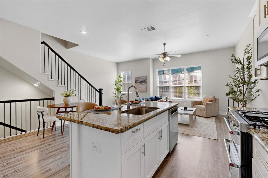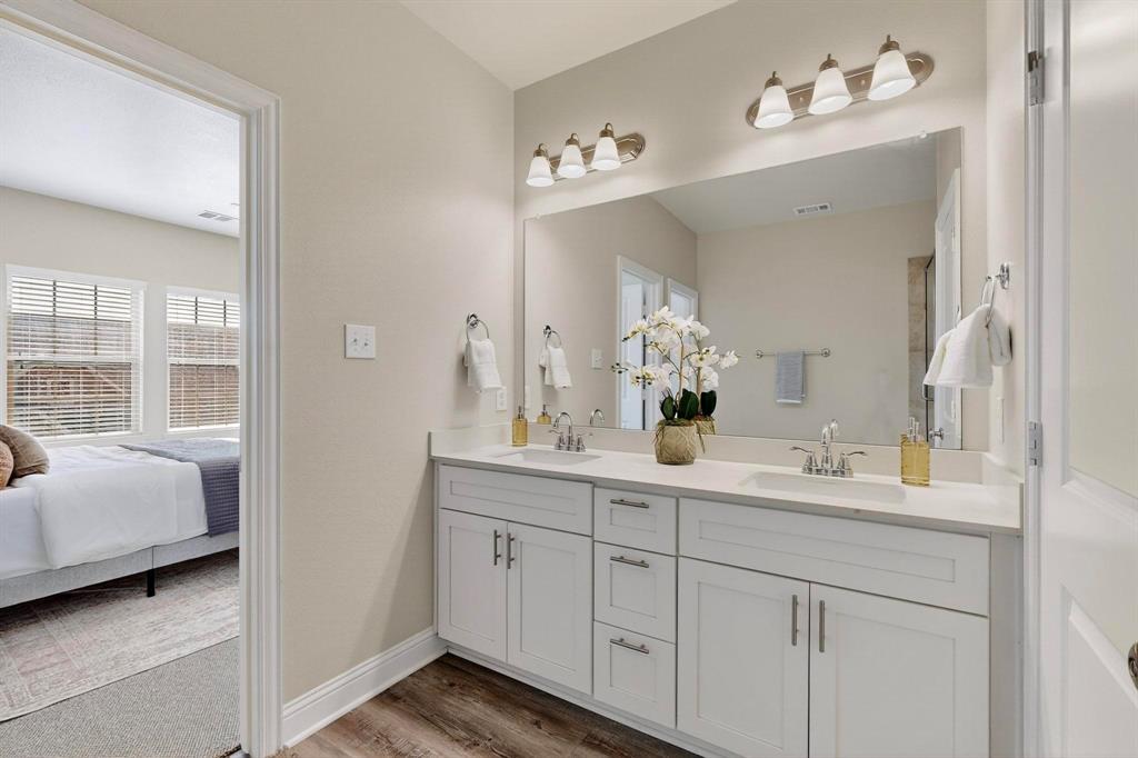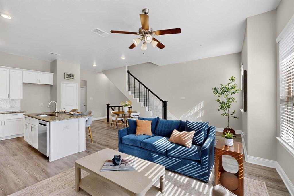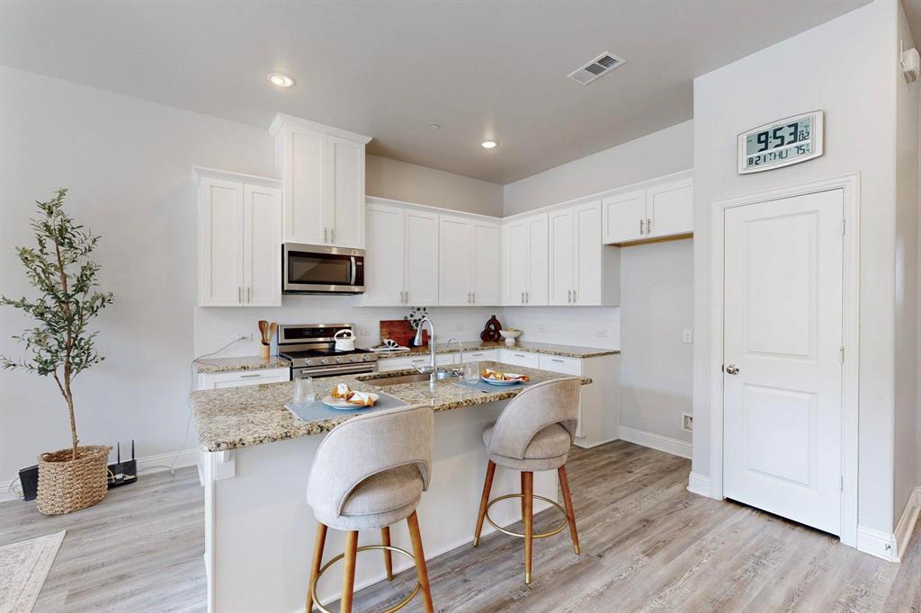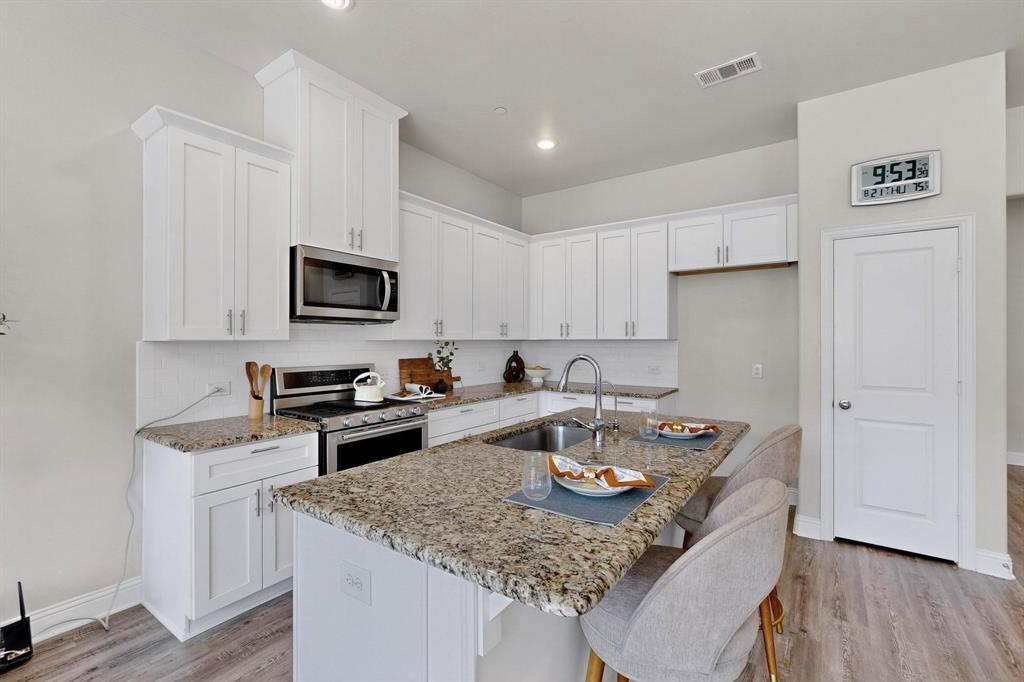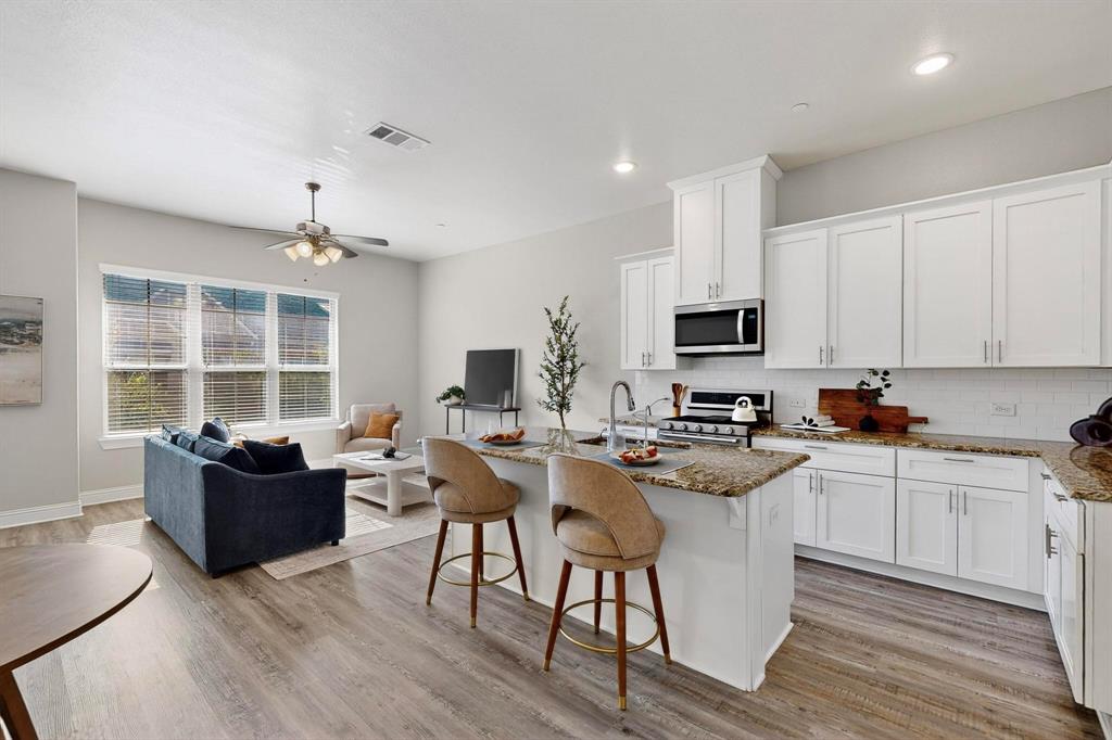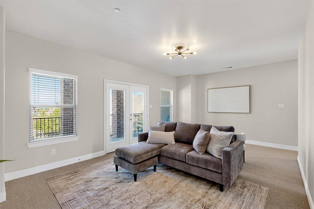 Freshly Staged & Newly Priced! Welcome to Windhaven Crossing! This modern 3-story townhome offers 4 bedrooms, 3.5 baths, and over 2,200 sq. ft. of stylish living space. Step inside to an open-concept layout with beautiful new wood laminate floors, updated designer lighting, and a fresh, modern vibe. The chef’s kitchen shines with quartz countertops, 2024 stainless steel appliances, gas cooktop, and soft-close cabinetry. The oversized primary suite is a true retreat—featuring a spa-like bath and a brand-new custom closet (a $3,500 upgrade!). Need flexibility? The bonus flex space with private balcony is perfect for a home office, gym, or morning coffee nook. Downstairs, a private guest suite with full bath provides comfort for visitors or extended family. Additional highlights include new carpet (2023), tankless water heater, garage storage + wide driveway, and HOA-maintained exterior with pool access. All this in a prime location minutes from Grandscape, The Colony, shopping, dining, and major highways. Fresh look, new price, and move-in ready—schedule your showing today!