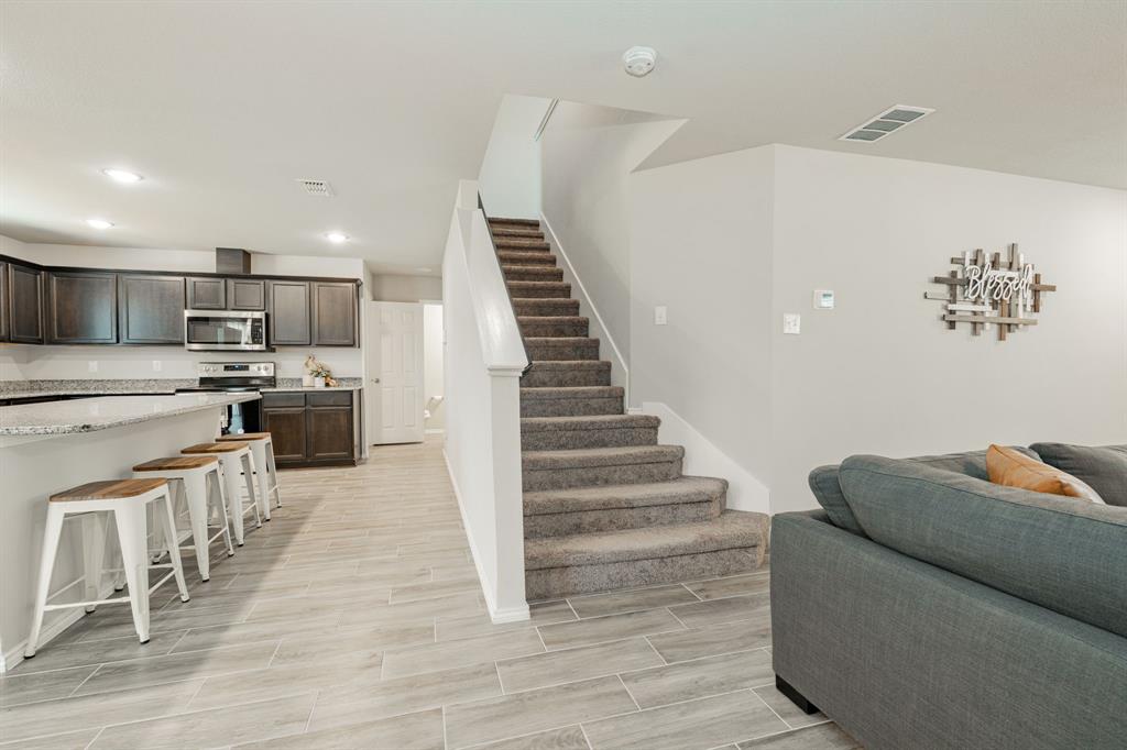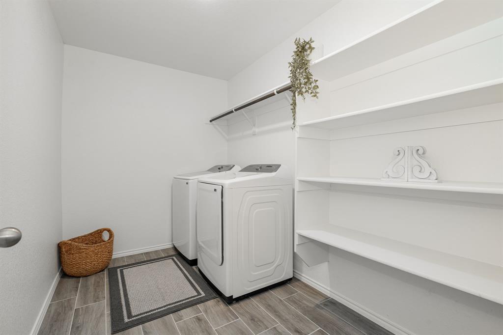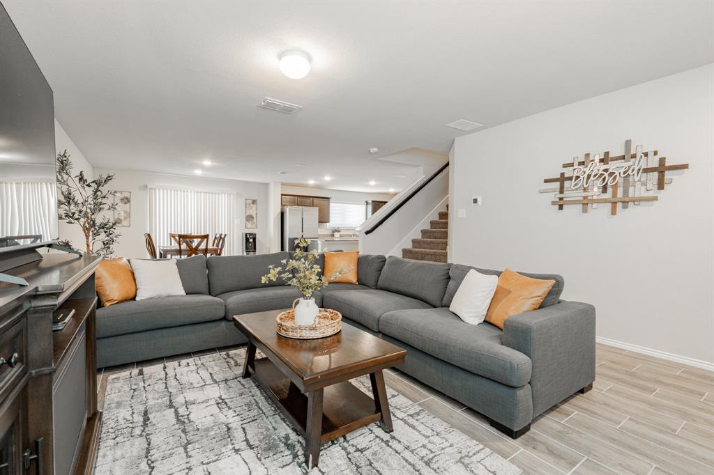 Designed for both comfort and functionality, this home includes a large laundry room, built-in shelving, and extra storage under the staircase. Upstairs, a spacious second living area adds versatility for a media room, play space, or home office. The primary bedroom is located upstairs with a walk-in closet and an oversized linen closet in the primary bathroom!