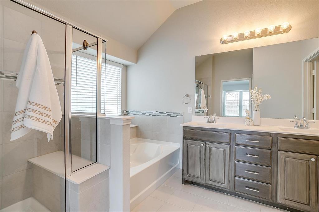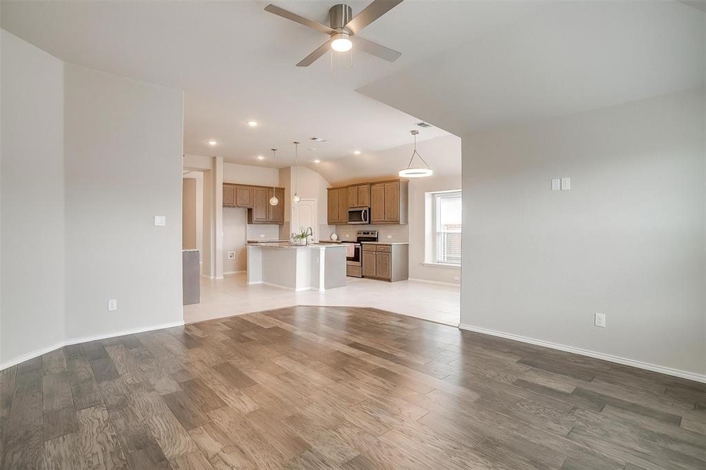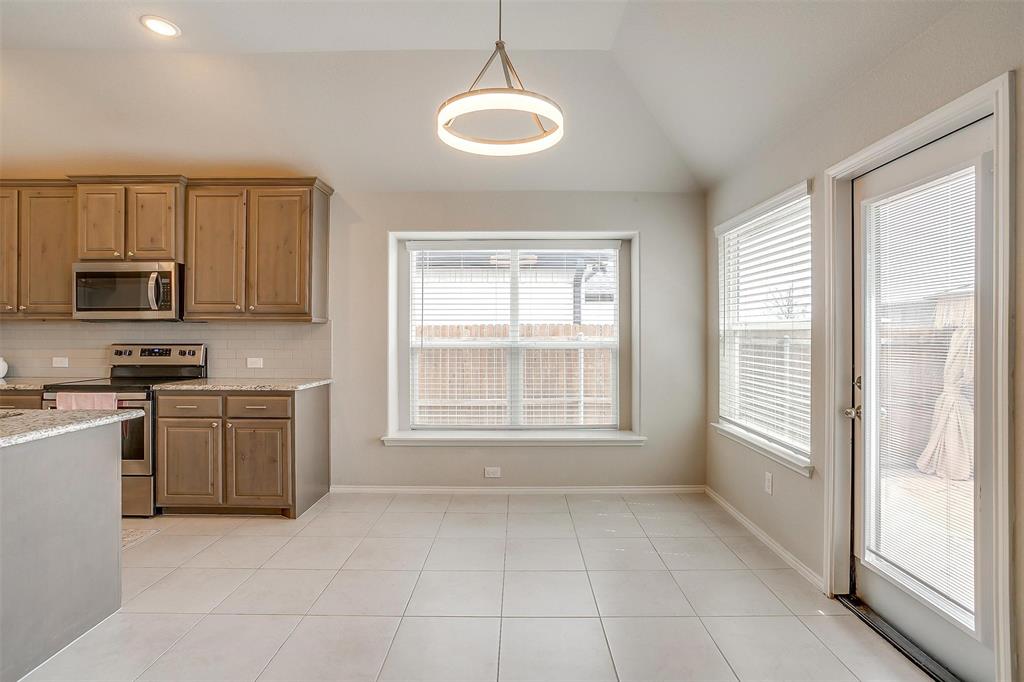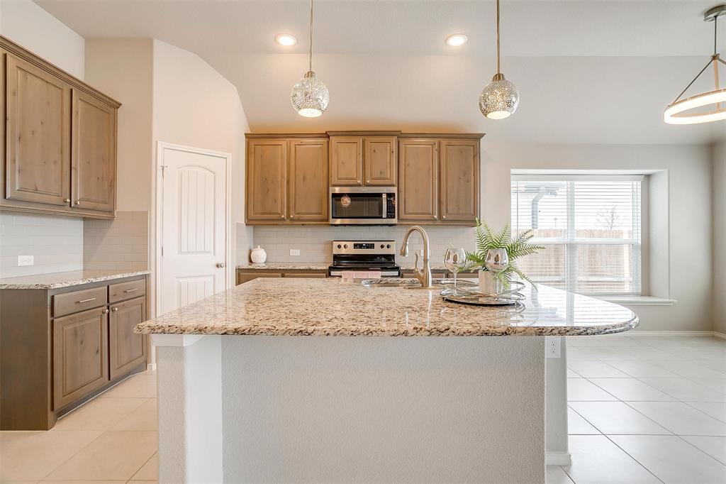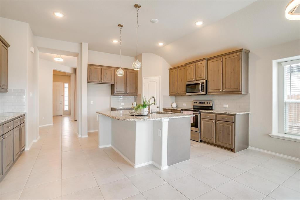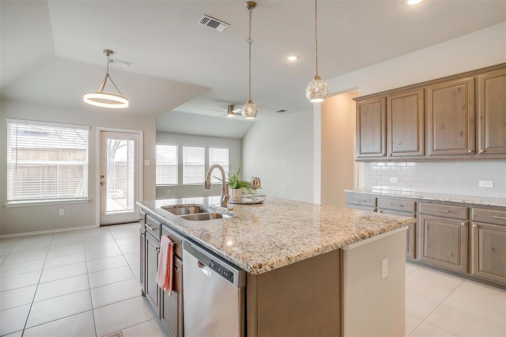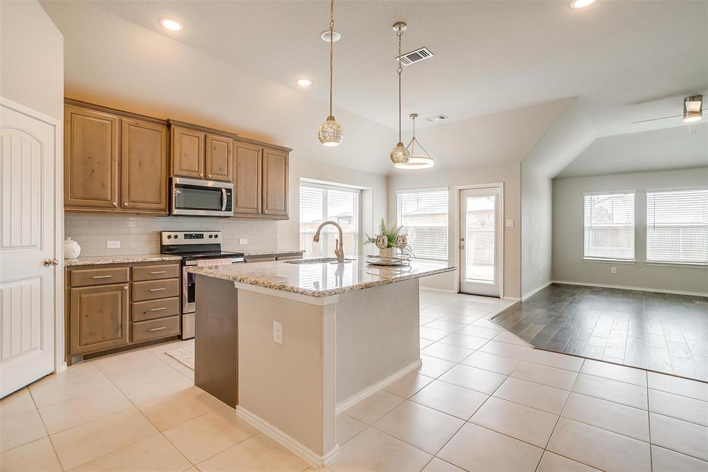 Welcome Home! This beautifully maintained and cherished home features not only 3 spacious bedrooms, but a separate office or flex space and formal dining room. Offering close to 2000 sq ft of open-concept living, this home combines comfort, style, and functionality—perfect for both everyday living with family but also entertaining with friends. Step inside to a light and bright color palette, with 15-inch tile floors and luxury vinyl plank in the living room for easy maintenance. The office or flex space is located up front of the home to assure peace and quiet while holding calls or watching for deliveries out the picturesque front window. The split bedroom layout allows everyone to have privacy, spread out and enjoy their own personal space. The primary room features a comfort system so you can keep it cooler or warmer, a personal climate control option without an excessive utility bill. This en-suite also offers a spa like bath with deep garden tub, separate shower and massive walk-in closet. The desirable modernized style marries elegance and functionality. The spacious kitchen features ample prep space with a chef designed island, abundant storage, a walk-in pantry, and breakfast bar. Some added bonus features are the pouring in of natural light, Luton smart switches and fans and smart irrigation system. Enjoy a beautifully landscaped backyard retreat with rock beds, a covered pergola, and a generous patio ideal for grilling and entertaining—plus no neighbors behind allow for added privacy. All this and more await you in your new home and still under builders' structural warranty. Minutes away from scenic Eagle Mountain Lake, gourmet dining, variety of shopping and multiple options for easy commuting. A beautiful, move in ready home just looking for the perfect family to make new memories with.