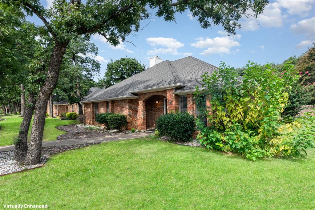 Welcome to 1447 Cat Mountain situated in an established desirable Highland Oaks neighborhood in Keller and zoned to the sought out Keller ISD. This 1-story brick home nestled among mature trees offers large living room with a brick gas fireplace, wet bar and tray ceiling, separate dining room, an eat-in kitchen with granite counter top, white backsplash, white shaker style cabinets and a breakfast area. The primary bedroom has access to the back patio, the en-suite bath has a sunken shower, large dual vanity. Carpets in all bedrooms and vinyl wood looking flooring in the rest of the house. Don't miss out on this home in Highland Oaks a great location priced below $400,000 with close proximity to parks, trails and more. Lawn is virtually enhanced and property is virtually staged. Items will not appear to be at the property.