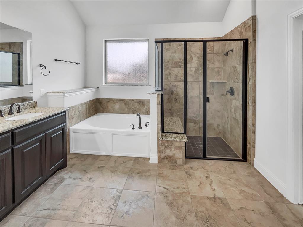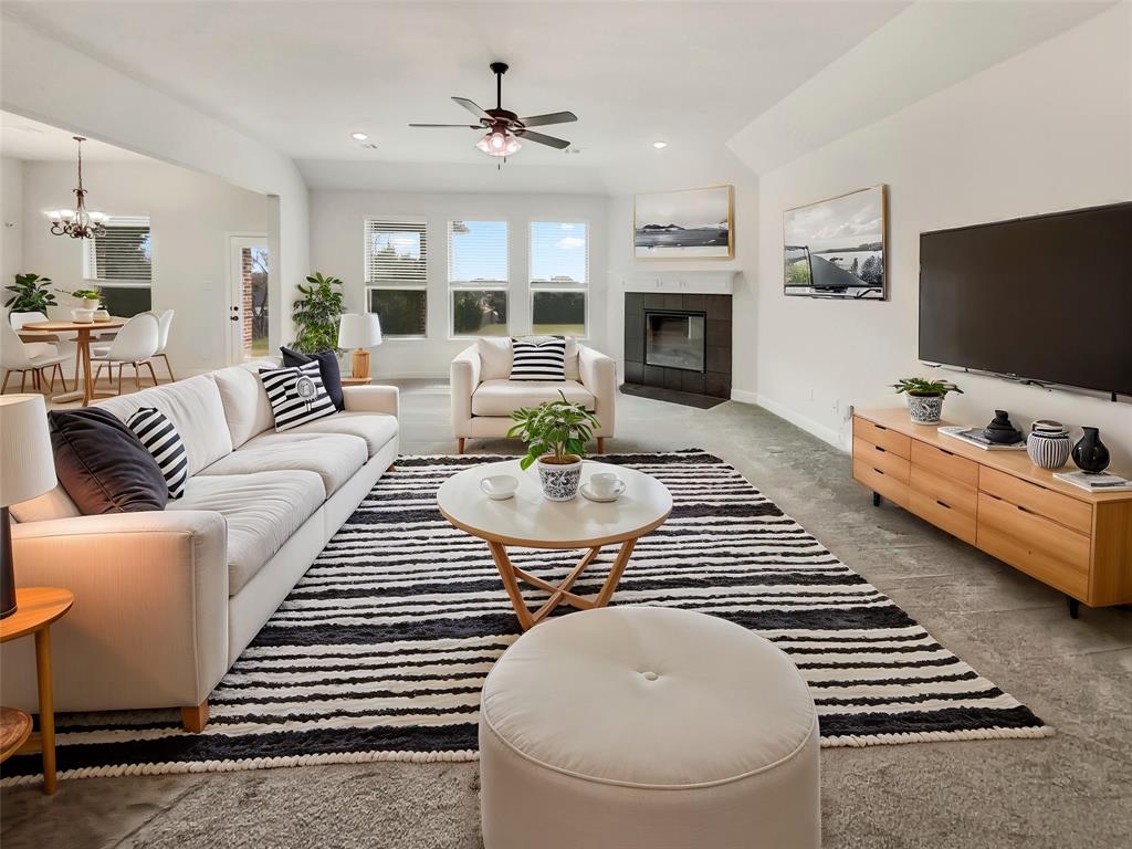 Welcome to this charming home with a cozy fireplace in the living room, creating a warm and inviting atmosphere. The natural color palette throughout complements the spacious kitchen, which features a center island and a nice backsplash. The primary bathroom boasts a separate tub and shower, as well as good under sink storage. Step outside to enjoy the covered sitting area in the backyard, perfect for relaxing or entertaining. Don't miss the opportunity to make this property your own oasis. This home has been virtually staged to illustrate its potential.