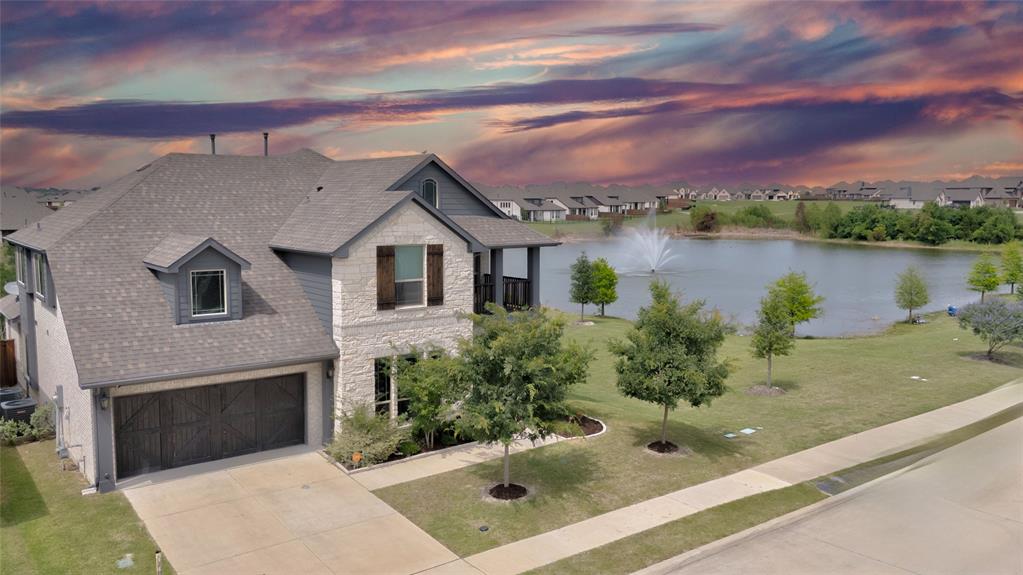 Situated on an amazing premium lot with only one neighbor and breathtaking, unobstructed views of the pond and water feature, this stunning Magnolia III by Bloomfield Homes offers the perfect blend of luxury and tranquility. With six bedrooms and five bathrooms, this thoughtfully designed home features dual master suites—one on the main level and another upstairs—providing flexibility for multi-generational living or hosting guests in style. Inside, high ceilings and expansive windows fill the home with natural light, while the open-concept layout showcases a gourmet kitchen with high-end finishes and a spacious family room designed for both comfort and entertaining. Outdoor living is just as impressive, with a covered patio downstairs and two covered balconies upstairs, offering incredible spaces to relax and take in the stunning water views. Generous secondary bedrooms, walk-in closets, and designer upgrades throughout complete this exceptional home. A rare opportunity to own a truly premium property in a coveted setting—schedule your private tour today!