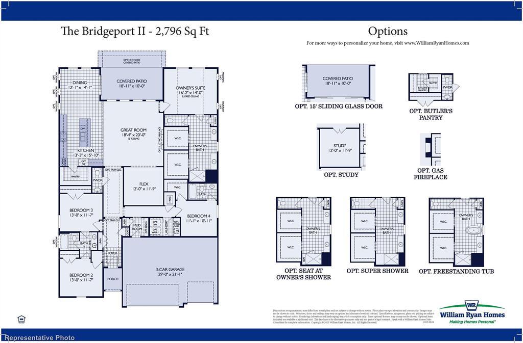 MLS# 20872281 - Built by William Ryan Homes - Ready Now! ~ The Bridgeport is our largest single-story home with 2,796 sq ft. It features 4 bedrooms, 3.5 baths and a 3-car garage. It has an extended entry with 2 secondary bedrooms that have a Jack and Jill shared bathroom. Bedroom 4 has an ensuite bathroom with a walk-in closet. The flex space off the great room can be used as a study or playroom. There is an abundance of natural light with additional windows in the Dining room and Owner's Suite. The generous size covered patio is perfect for outdoor entertaining. Some of the options include Sliding glass doors at Great Room, extended rear patio, Fireplace, super shower in Owner's bath.