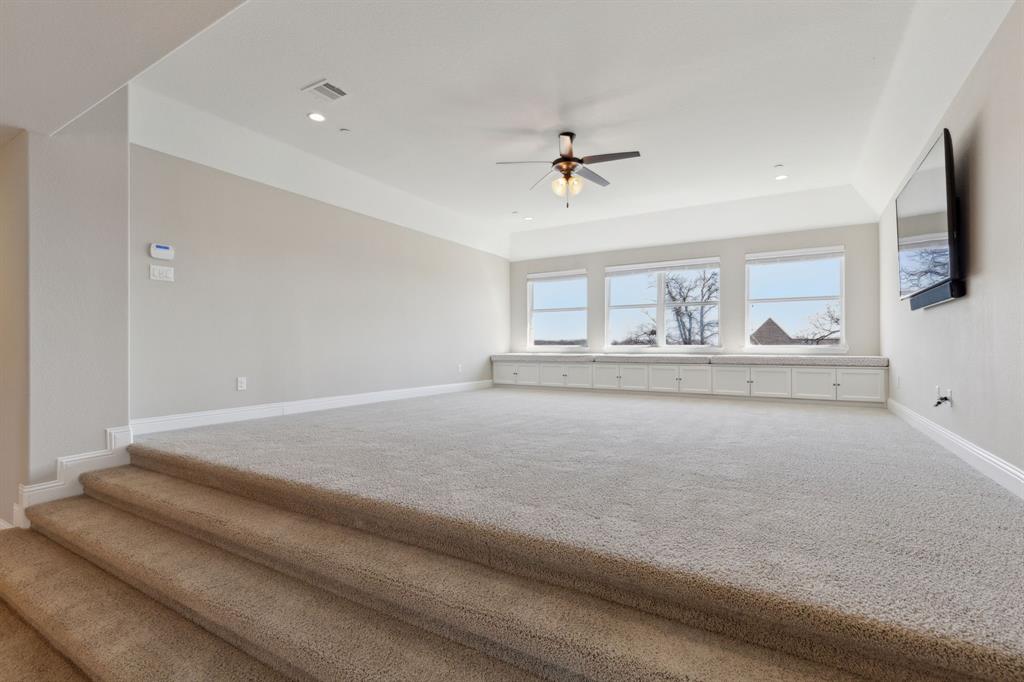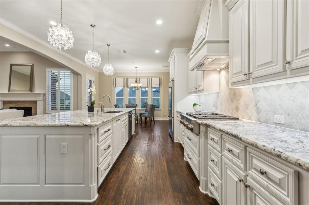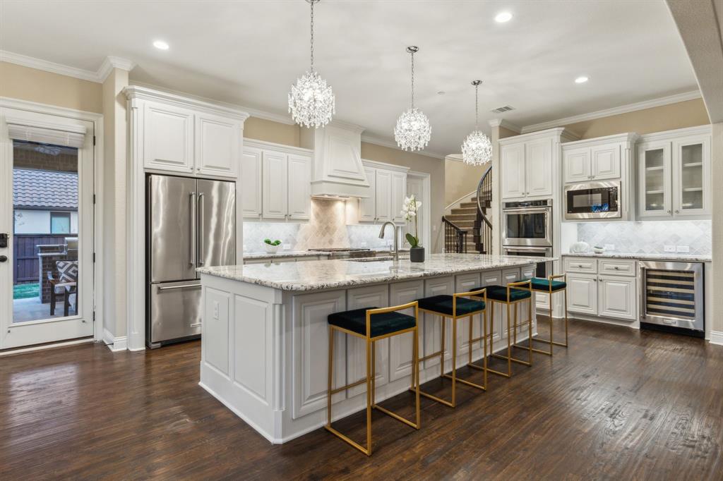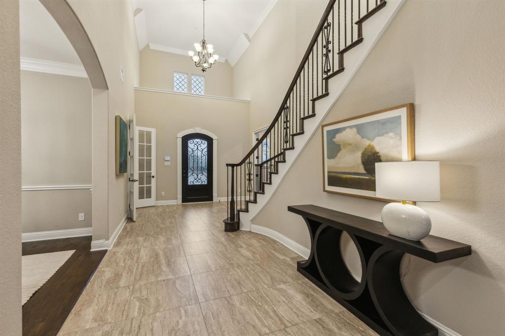 This meticulously designed home offers high-end finishes, expansive living spaces, and an exceptional open-concept floor plan that cater to both family living and grand entertaining. Step inside to be greeted by soaring ceilings in the grand two-story foyer with an elegant curved staircase and oversized windows that fill the home with natural light. The inviting living area is anchored by a gas fireplace, creating a warm and welcoming ambiance. The open kitchen is the heart of the home, featuring a large center island with granite countertops, stainless steel appliances, a built-in wine cooler, and custom cabinetry, ideal for both everyday meals and large gatherings. A dedicated office and library provide a quiet, professional space for work or study. The notable master bedroom includes an eleven-foot tray ceiling, two walk-in closets, a glass enclosed shower and spa-like jetted tub. Upstairs, the entertainment spaces are specious and truly exceptional, making this home a dream for families. The game room is equipped with a built-in wet bar perfect for hosting game nights, while the playroom provides a dedicated space for kids or a second lounge area. The state-of-the-art media room comes with a media tower, projector, and screen, delivering an immersive theater experience for movie nights or big sporting events. Located in one of Colleyville’s most desirable communities, residents enjoy top-rated schools, scenic walking trails, and exclusive amenities, all just minutes from fine dining, shopping, and major highways. This home is a rare opportunity to experience luxury, entertainment, and convenience all in one.