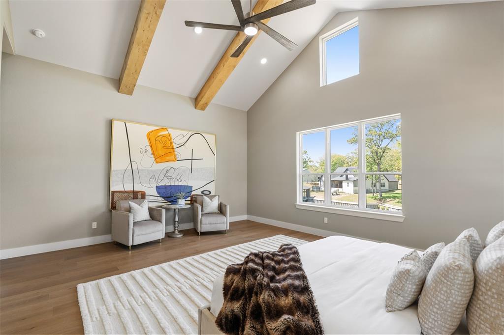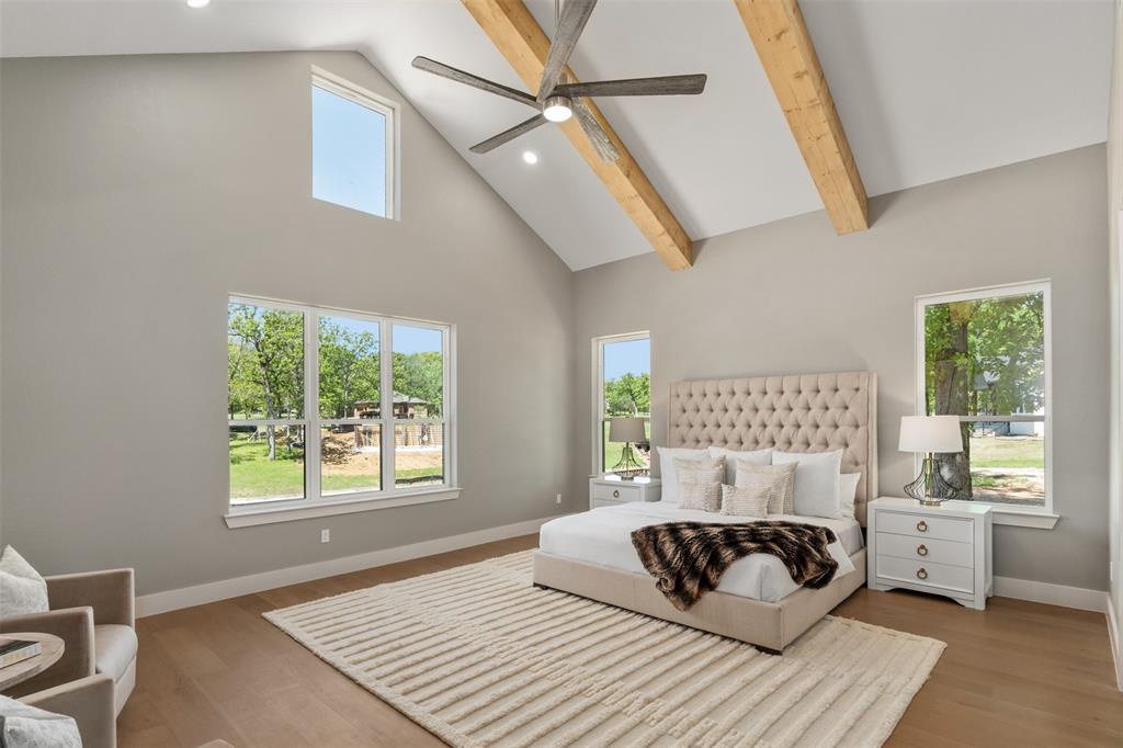 The FOURTH BEDROOM or BONUS ROOM (NO DEDICATED CLOSET, BUT WITH CONTRACT BUILDER WILL INSTALL) is filled with natural light and lake views. This home, built by Coastal Plains Estates, exhibits exceptional attention to detail, including floor-to-ceiling tiles in all bathrooms. Both secondary bedrooms also enjoy fabulous water views. The ceilings throughout, except for the living, dining, and kitchen areas, are 11 feet high, and the interior doors are solid 8-foot doors.
