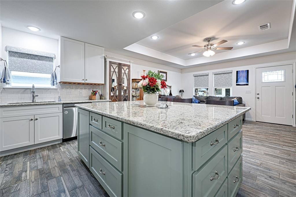 Outside: 10x17 covered patio, fully fenced backyard, 20x30 wired Texwin workshop with steel shelving, 4x6 storm shelter, and a 21kW Generac generator (recently serviced). No HOA. Clean, upgraded, and ready for you!