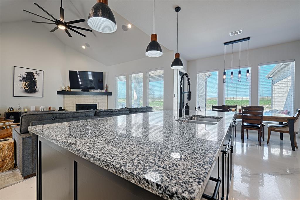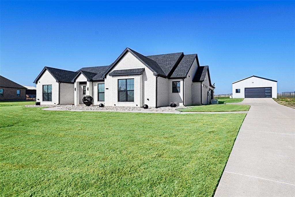 Discover luxury living in this stunning custom-built 3-bedroom, 2-bath home, thoughtfully designed for style, efficiency, and functionality. The open-concept island kitchen is a chef’s dream, featuring a commercial propane cooktop with a pot filler, GE Profile convection oven and air fryer, walk-in pantry, and soft-close cabinetry. High-end finishes flow throughout, including custom epoxy floors, vaulted ceilings, detailed trim work, and a Sonos surround sound system. The primary suite offers a spa-like retreat with a freestanding tub, an oversized custom walk-in closet, and elegant finishes. A versatile flex room, currently used as an office, includes a closet and can easily serve as a fourth bedroom. The spacious utility room adds convenience with custom cabinetry and an under-counter refrigerator. Step outside to an entertainer’s paradise, complete with an outdoor fireplace, bar, and griddle—perfect for gatherings. Additional features include a cozy indoor fireplace, insulated commercial garage doors on both the home and the 30x60 shop, and a dog wash station in the garage. The shop is ideal for hobbies or fitness, featuring a 600 sq. ft. gym with a mini-split heat pump. Built for energy efficiency, this home includes total foam encapsulation, a tankless water heater, and a 500-gallon propane tank. For added peace of mind, a Cummins 24kW propane backup generator ensures reliable power. This exceptional property showcases premium craftsmanship and modern conveniences at every turn. Schedule your private tour today!