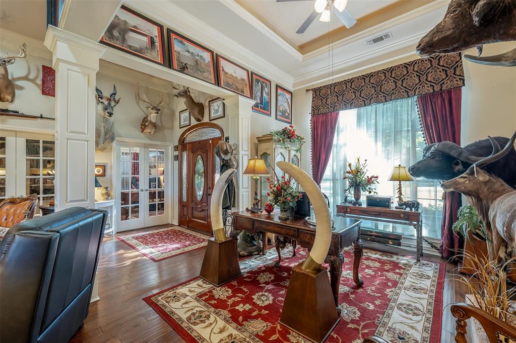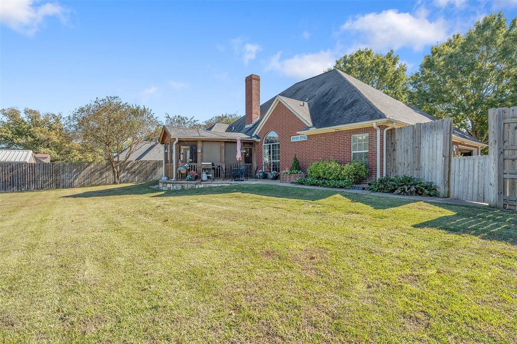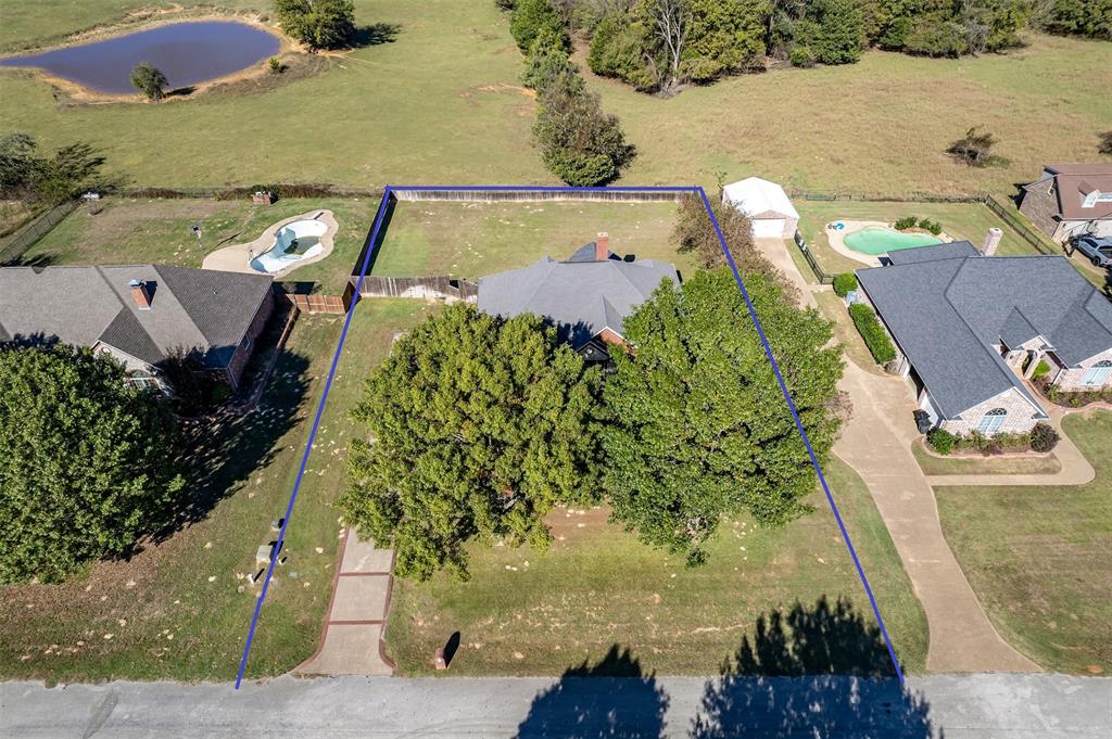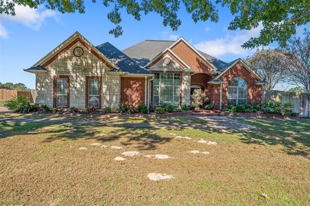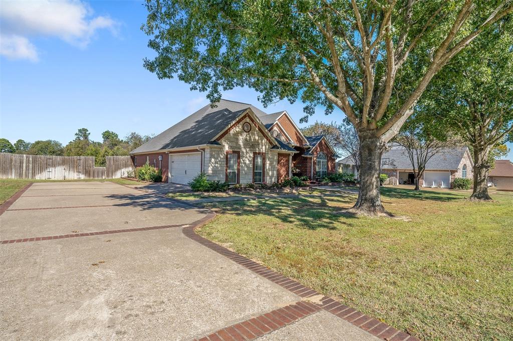 Beautiful custom home built in small, quiet community of Lone Oak Estates. Towering 12ft ceilings creates an awe inspiring entrance to this lovely home with a limestone gas burning fireplace and 12in crown molding throughout. New wood flooring brings a rich, warm feeling from the living room to the enclosed outdoor patio. The floor plan is a split primary bedroom and 2well appointed bedrooms and a large office. The primary suite has a custom library that meanders the French doors leading into the bedroom with 2 walk-in closets, 2 vanity sinks with jetted tub, seperate shower. The kitchen has a breakfast bar, pantry, and dining area overlooking a large fenced backyard and rolling hills of tranquil pasture land. Located south of Tyler, close to Lake Palestine, churches and more.