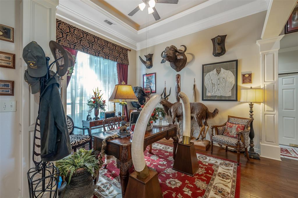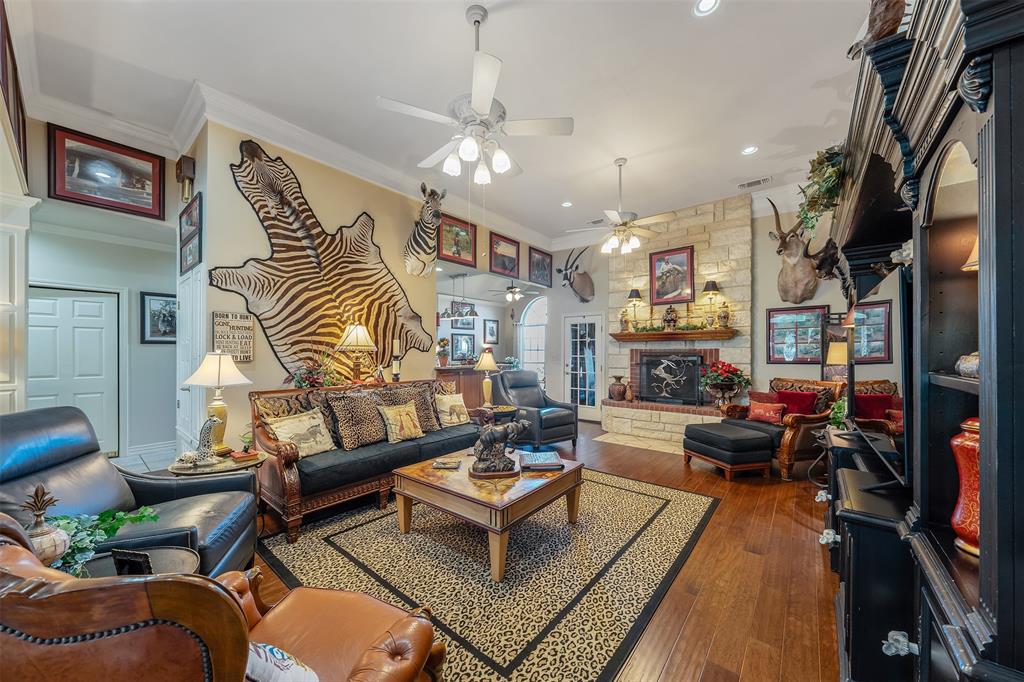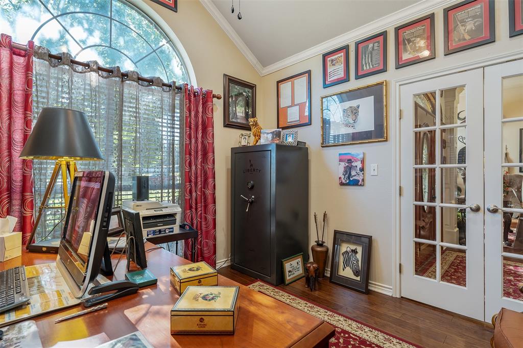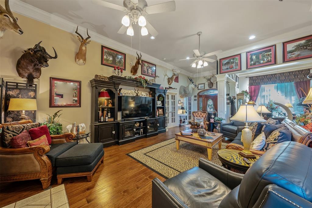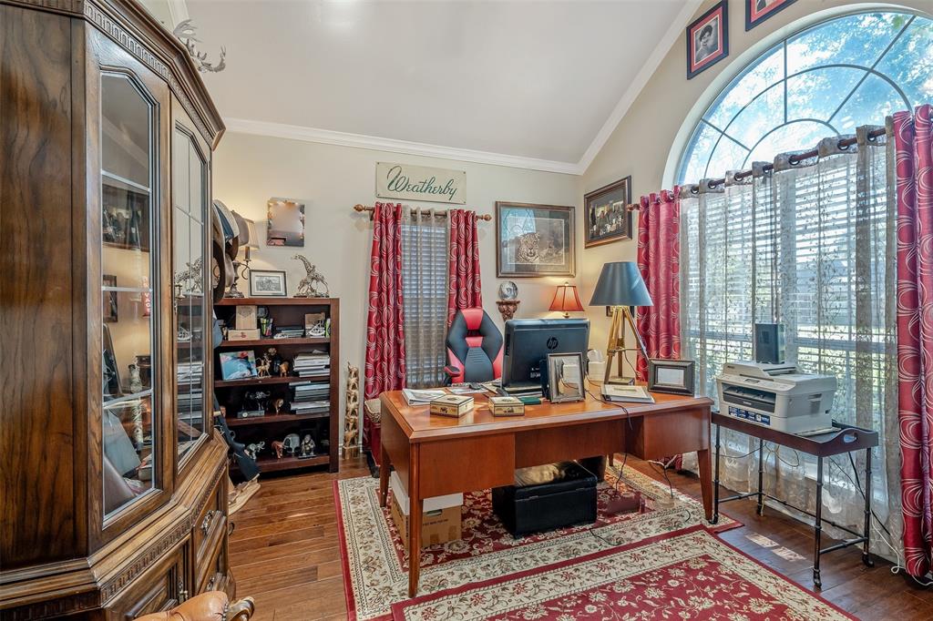 Beautiful custom home built in small, quiet community of Lone Oak Estates. Towering 12ft ceilings creates an awe inspiring entrance to this lovely home with a limestone gas burning fireplace and 12in crown molding throughout. New wood flooring brings a rich, warm feeling from the living room to the enclosed outdoor patio. The floor plan is a split primary bedroom and 2well appointed bedrooms and a large office. The primary suite has a custom library that meanders the French doors leading into the bedroom with 2 walk-in closets, 2 vanity sinks with jetted tub, seperate shower. The kitchen has a breakfast bar, pantry, and dining area overlooking a large fenced backyard and rolling hills of tranquil pasture land. Located south of Tyler, close to Lake Palestine, churches and more.