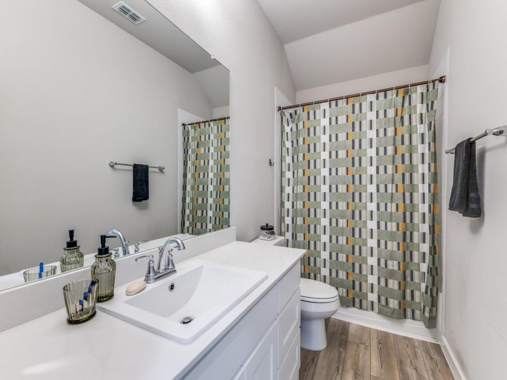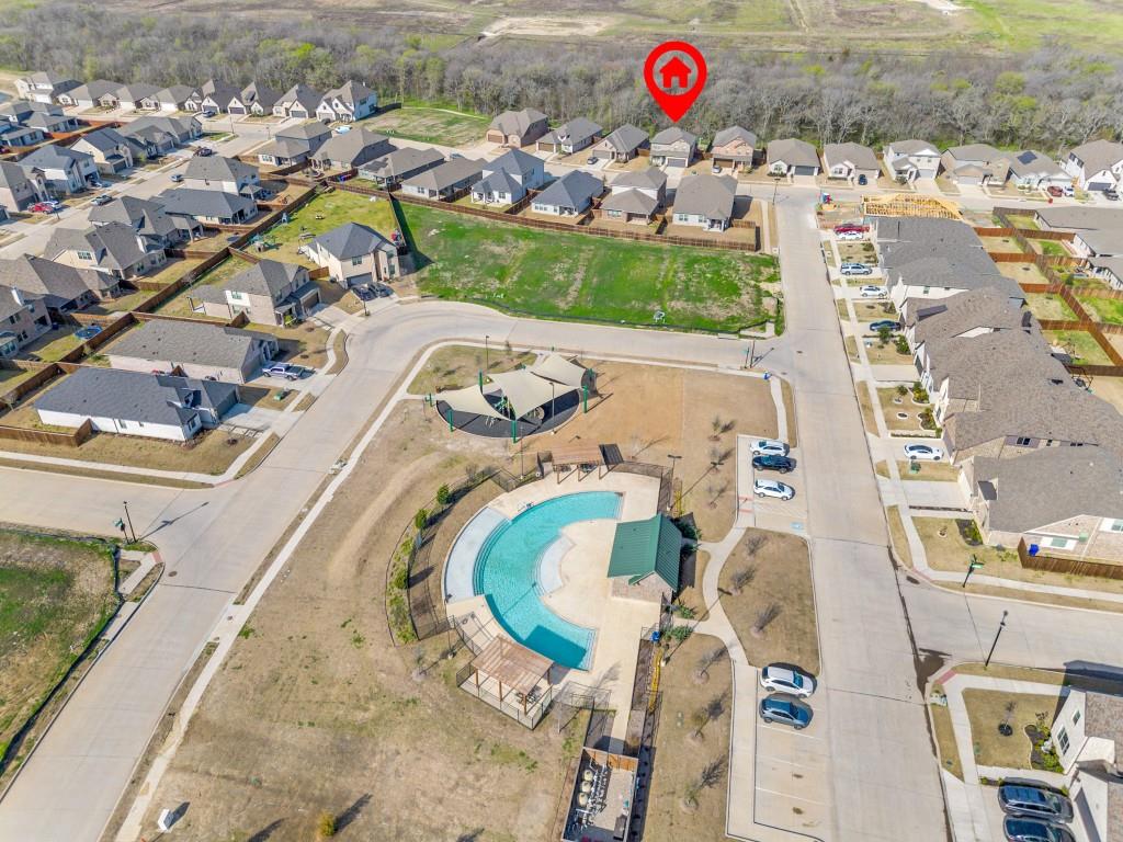 This home is worth adding to your wish list! ASK ABOUT INCENTIVES! Discover a two-story masterpiece that redefines modern living. This thoughtful two-story home design features an open layout that effortlessly combines style with functionality. Enjoy a bright, open-concept kitchen with contemporary cabinetry, a spacious center prep island, and generous counter space that flows seamlessly into the dining and living areas. Located at the front of the home, the private office offers a quiet retreat for focused work and can easily be adapted into a charming nursery. Tucked away for privacy, the Master Suite features an ensuite bath complete with a double sink vanity and a separate shower. The second floor hosts a large game room perfect for family gatherings and fun along with three inviting bedrooms. Enjoy the covered patio and privacy of backing to a greenbelt. Community amenities include a Pool & Playground. NO PID & NO MUD are a financial plus!