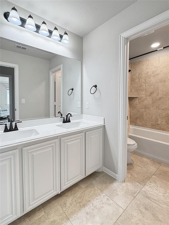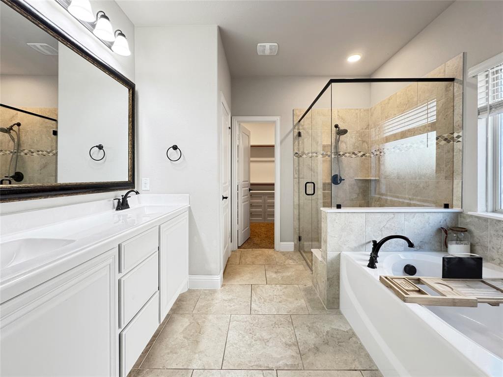 The spacious kitchen boasts sleek countertops, stainless steel appliances, and ample storage. The primary suite includes a spa-like bath with dual vanities, soaking tub, and walk-in shower. Three additional bedrooms provide plenty of space for family, guest, or a home office.
